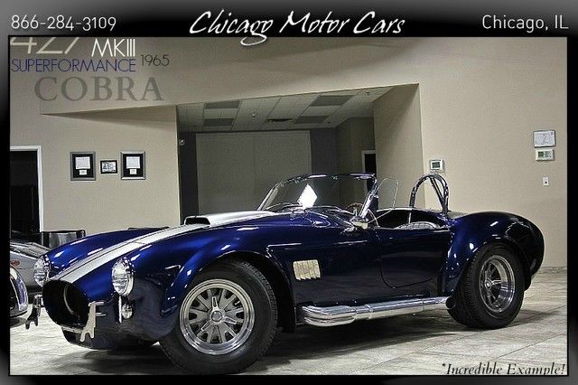 | 1965 Superformance MKIII Cobra 2dr Roadster 1965 Superformance MKIII COBRA #SPO1817Indigo Blue w/ Silver Stripes over Black Leather Interior ONLY 560 MILES! FORD RACING 460CI! FACTORY OPTIONSTonneau coverCeramic Coated Side Pipes & HeadersLocking Glove BoxStainless Steel Quicklifts & Roll BarTwin Painted Silver Stripes295 Tire Option ENGINE Ford Racing 460 Crate Motor-575 Horsepower- VEHICLE HIGHLIGHTSShow Quality Two-Stage Paint FinishHand Laminated Fiberglass Body w/ Reinforcing InsertsHeavy Duty TIG Welded Ladder Frame Chassis w/ Crumple ZonesFully Independent Front & Rear SuspensionLimited Slip DifferentialWillwood Vented Disc Brakes (4-pot calipers. Front. Single-pot calipers back)Custom Crafted Coil-over ShocksAluminum Pin Drive Halibrand Style WheelsSide and Rear View MirrorsOriginal Style Pedals. Catches and FittingsOriginal Style Shifter & Hand Brake LeverCarpeted Interior & Trunk. Aluminum finished firewallSun Visors & Wind WingsWipers & Washer. Heater/DefoggerLeather Seating SurfacesOriginal style latch-lock seat beltsMoto - Lita Wooden Steering WheelMonza style filler (locking gas cap)Aluminum. single core hi-performance radiator. shroud and dual fansOil Cooler & Braided LinesStainless Steel Fuel Tank. 17 gal. (Pressure tested. )Original style side pipes and headersOriginal style gauges (Smith) and switches. (Lucas. ) FOLLOW US ONLINE! Follow us on Facebook Follow us on YouTube Follow us on Instagram Follow us on Twitter **********************************************************We Can Assist You In Shipping Your Vehicle Around The Globe!!CALL US TOLL FREE AT1-866-284-3109**FOR INTERNATIONAL CALLS USE**1-630-221-1800**FREE AIRPORT PICKUPS****2004-2014 EBAY MOTORS TOP SELLER AWARD**100% CHICAGOMOTORCARS. COM QUALITY GUARANTEE!!100% CUSTOMER SATISFACTION!!100% NO EXCUSES!!100% NO STORIES!!100% HASSLE FREE!!JUST ONE LOW PRICE FOR AN OUTSTANDING CAR!! Here at Chicago Motor Cars. we make every effort to ensure that our vehicle will exceed the expectation of the most demanding buyers. Each vehicle is hand-selected by our expert purchasing staff. then handed over to our reconditioning team to bring the car as close to new as is humanly possible. Our goal is to offer the most exceptional pre-owned vehicles in the marketplace at unbeatable prices!Please remember. every one of our cars has been enjoyed by their original owners. and these are not factory-new cars. This means they have actually been driven. and regardless of the level of care. every car will exhibit some wear-and-tear. Our vehicles are advertised with the current mileage at the time of listing. so mileage at the time of sale may vary due to test drives. transportation for reconditioning. etc. We go above and beyond to be as accurate as possible in our listings and descriptions. but remember. we are still human just like you. Cars leave the factory with unattached accessories (i. e. floor mats. extra keys. owners manuals. headsets. remotes. etc). and while it would be ideal to have all original accessories included with every car. this is not always the case. We will note in our listings any accessories that will be included. and provide a picture within the listing of all accessories. We do all within our power to avoid mistakes or misprints. so if you see any inaccuracy within our listing. we only ask that you bring this to our attention so that we can immediately rectify the information. We cannot be held responsible for any purely accidental inaccuracies. Since our ultimate goal is 100% customer satisfaction. we ask every customer to verify the listed equipment at the time of purchase with their salesperson. Please do not make any assumptions regarding condition or equipment. If you have any questions or concerns. call us at (630) 221-1800 and ask to speak with a sales manager to discuss. We also ask that that you not misinterpret anything in this disclaimer. as it is intended to be understood exactly as it is written. We are here to provide only the very best in quality and customer service! |