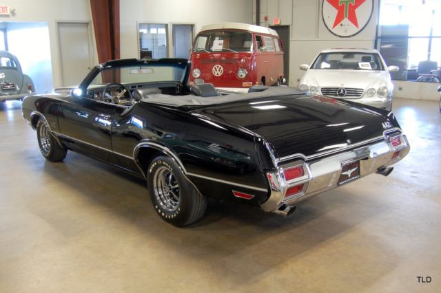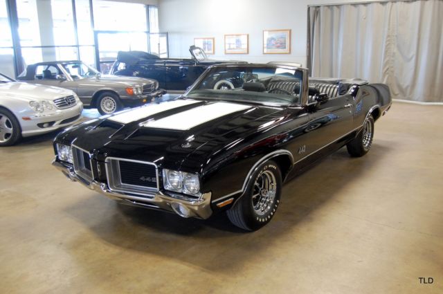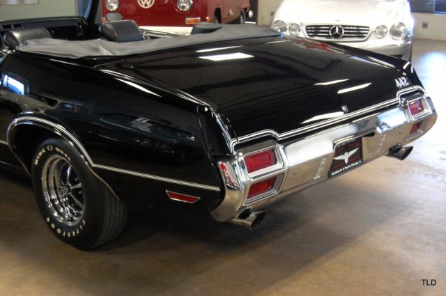 Complete Frame Off 100pt Restoration! Documented Original Engine & Drivetrain! Factory Original 4 Speed w/Air Conditioning! Flawless Ebony Black w/Hood Stripes Black Interior w/Power White Top Protect-O-Plate & Window Sticker Power Brakes & Steering RARE!! 1 of 183 Cars!! The Olds 442 is legendary amongst gearheads around the globe, and this heavily documented and thoroughly restored convertible is at the top of its class!! The pristine Ebony Black exterior is highlighted by factory white racing stripes and power top. The... black interior has factory features including the Strato-Bench seat, tilt steering wheel, AM/FM radio w/8 Track and A/C. The numbers matching 455 and factory 4 speed are fully rebuilt and documented by the original Protect-O-Plate, window sticker and pre-delivery sheet. This 442 is coming out of a serious collection and is sure to be the envy of any enthusiast that comes across it!! Give us a call to find out more today!!