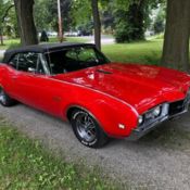 1968 Oldsmobile 442400 CI V-8 EngineAutomatic transmission12 bolt rear endPower brakesBlack with Red stripingBlack bucket seat interiorCenter consoleHurst Dual Gate shifterTinted glassChrome driver's mirrorAuxiliary gaugesSport wheelsRedline tires General Motors gave its midsize intermediate platform a much-needed makeover for the 1968 model year, and Oldsmobiles Cutlass-based 442 was one of the most dramatic and aesthetically successful interpretations of the new design. A separate model available in two-door hardtop coupe and convertible body styles, the new 442 showed off flowing rounded contours... in place of the dated linear shapes of the past, its shorter front and rear overhangs emphasizing the new cars poised-to-pounce stance. This handsomely restored 1968 Oldsmobile 442 coupe appeals to purists with its sporting appearance combining black paint with a contrasting red sport stripe, the motif repeated in the cars redline tires on chromed Super Stock wheels with black accents. The 442 badges and twin imitation hood grilles denote the cars stout 400/325 HP big-block V-8 engine, which is mated to a console-shifted Turbo Hydra-Matic 3-speed automatic transmission. Upscale interior appointments include bucket seats, Soft Ray-tinted glass, three-spoke wood-grain-rimmed Sport steering wheel and a pushbutton radio. Give us a call today 844-652-8767Located here in our showroom WE FINANCE/ DELIVER AND SHIP WORLD WIDE