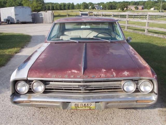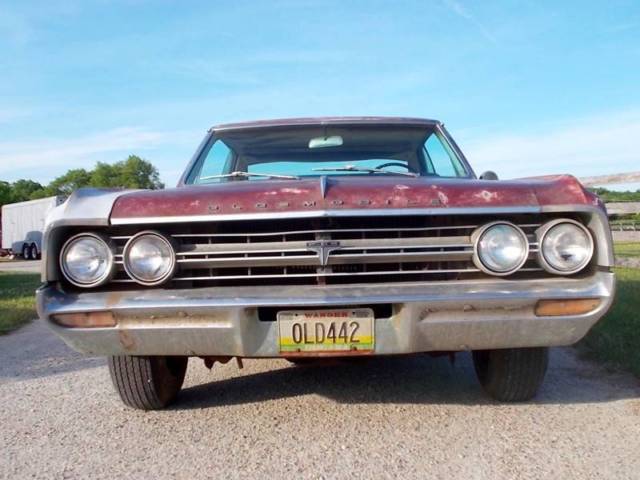 RARE BARN FIND! 1ST YEAR 64 OLDS 442 HARDTOP WITH MATCHING 330 4 BBL 4 SPEED AND POWER BRAKES. ALL THE 64 442 PACKAGES WERE 330 AND 4 SPEED. ONLY 1842 HARDTOPS BUILT. LOOK UP 64 OLDS 442 PRODUCTION ONLINE AND YOU WILL FIND THAT THEY MADE TEN 4 DOOR 442's, HARD TO BELIEVE. ANYWAY, LAST OWNER HAD IT SINCE 1978. HE STATED THAT THE ENGINE WAS REBUILT 12 YEARS AGO AND 6000 MILES SINCE BY MATTINGLY AUTOMOTIVE WHO HAS... SINCE CLOSED DOORS DUE TO DEATH. IT DOES RUN GREAT WITHOUT SMOKE AND HAS MODERATE RACE CAM. AND IT STILL HAS THE CORRECT AIR CLEANER. CODES: ENGINE ON RIGHT HEAD IS T=330 AND G =HI COMPRESSION ENGINE CASTING 1 381917 INTAKE 380659 MUNCI 4 SPEED P 1124 = JAN 12, 64 WE ARE RUNNING IT ON 2 GAL JUG. GAS TANK HAS A COUPLE HOLES. TIRES HOLD AIR. AFTER 5 YEARS OF SITTING THE BRAKES WORK ENOUGH TO LOT DRIVE AND DRIVE ON TRAILER. HAS GOOD GLASS AND MOST STUFF WORKS. RADIO TRYS TO PLAY BUT NEEDS ANTENNA. LIGHTS AND TURN SIGS WORK. GAUGES WORK. WIPERS DON'T BUT I THINK A LITTLE CLEANING AND THEY WILL. HORN BUZZES. ONLY THINGS MISSING ON OUT SIDE ARE 3 PIECES OF FENDER TRIM AND A 442 FENDER EMBLEM. SELLING AS IS WITH NO WARRANTY WITH CLEAN TITLE AND IT MATCHES VIN ON CAR. NO MILES ON TITLE. OD SHOWS 12000, NOT ACTUAL. IF YOU HAVENT BEED TO MY WEBSITE SEE SHORT VIDEO AT 500 CLASSIC AUTO. COM. BODY IS ALL ORIGINAL METAL EVEN THE PREMERED FENDER. IT WAS BUMPED GETTING ABOUT A 1 FOOT AREA OF A DENT THAT HE FILLED. THE RUST ISN'T TO BAD. THE HOLES TO REPAIR ARE IN THE FLOORS AND TRUNK. THE QUARTERS JUST NEED PATCH PANEL TO VERY REAR. WHEEL WELLS GOOD EXCEPT AT BOTTOM REAR ABOUT 4 INCH AREA. REPLACEMENT TRUNK PAN COMES WITH IT. IT WILL NEED SURFACE RUST BLASTED AND THEN GOOD TO USE. FLOORS ARE TO BE DETERMINED BY NEW OWNER. THEY CAN BE PATCHED OR SECTIONED OR ? INTERIOR IS COMPLETE EXCEPT FRONT SEAT BELTS AND CARPET. THIS WAS A NON CONSOLE CAR. DASH PAD HAS A COUPLE CRACKS. THE REST YOU CAN SEE NEEDS REPLACED. LAST 3 PHOTOS OF IT IN BARN WHEN FOUND.WE POSTED 90 PHOTOS HERE FOR BUYERS TO REVIEW. ITS A GREAT MUSCLE CAR THAT WOULDN'T BE TO HARD TO RESTORE AND SHOULD BE FINE MECHANICALLY OTHER THAN THE USEUAL REPAIRS TO BRAKES AND TUNING. WE DELIVER ALL OVER THE WORLD. I NEED ZIP CODE TO PRICE. I NEED PORT NAME TO PRICE OUT OF USA AND COUNTRY. FINANCE IS POSSIBLE AS LOW AS 3%. CALL FOR INFO.