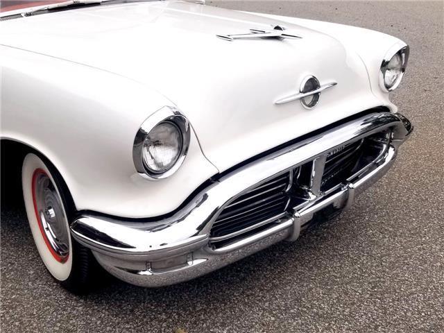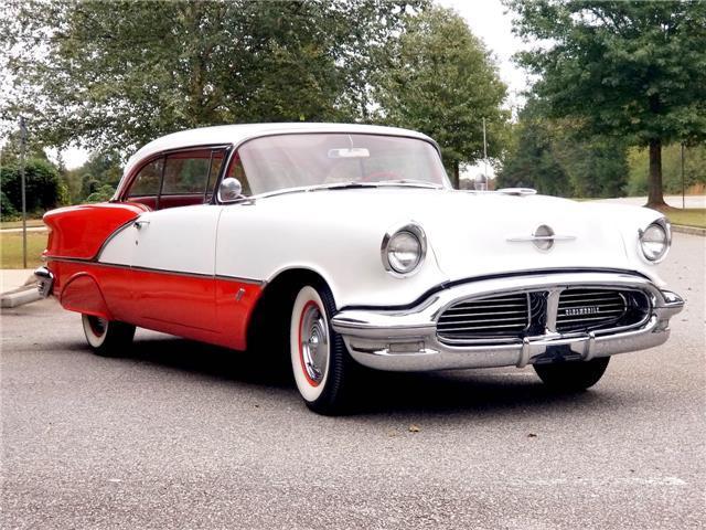 1956 Oldsmobile 88 Hardtop Coupe. Vin 267M49378. 4-Speed Automatic Gearbox. S20: Festival Red with 50: Sterling Grey. Trim 345: Red Morocceen bolster with Black & White pattern cloth. This gorgeous looking 88 “Holiday” is all around a great car! Beautiful paint, super clean interior, and excellent performance. Collector car financing available at competitive rates. Vehicle Disclaimer: We make every effort to provide you the most accurate, up-to-the-minute information on all of our vehicles in our inventory. However, please do verify with us before purchasing...that all the information is correct and up to date. Also, unless we take a deposit, any car is fair play and up for sale.