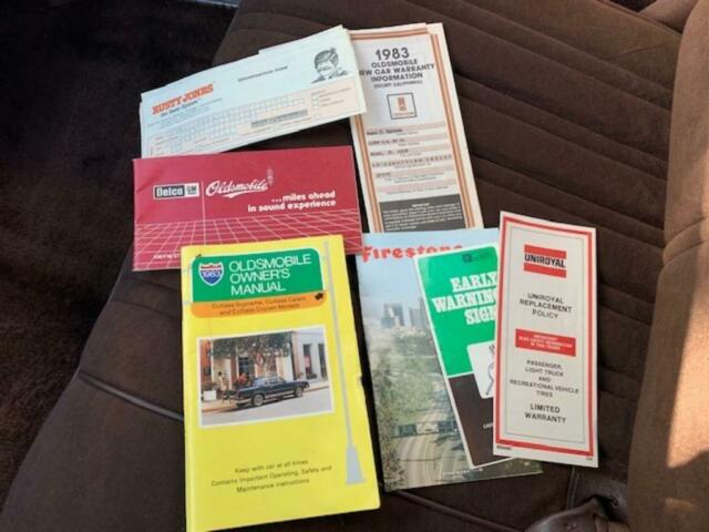 1983 Oldsmobile Cutlass Supreme, Only 31,080 Original Miles Survivor, Garage Kept Its Whole Life, #59 Frost Beige Paint Lacquer exterior, #67 Dark Briar Brown interior, LV2 307 4BBL V8 with a TH350 Automatic Transmission, F41 Firm Ride and Handling Package, Ice Cold AC converted to R134-A with new AC compressor New Fuel Pump, Fuel Filter and Gas Tank, Sending Unit Power Windows, Power Steering, Power Door Locks Power Brakes, Front Disc, Rear Drum, AM6 Power Seat, Front Split, 3 Passenger, Center Arm Rest AM/FM Stereo Dual Sport Mirrors Olds Color Keyed 15X7 Rally Wheels with brand new tires, Original Owners Manual and Dealer Paperwork included, This is an unbelievable example of a true low mile survivor! Comes with lots of extra parts including original wire wheel hubcaps, extra steering wheel, extra fender trims, extra antenna (current one does not go up and down), extra belt line felts (brand new). This is a turnkey car that can be driven anywhere! Fly in and drive her home!