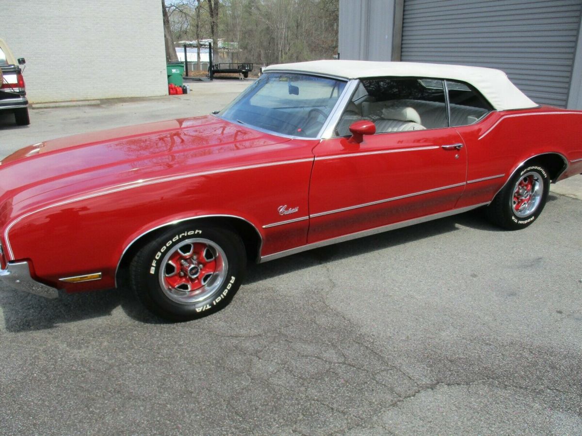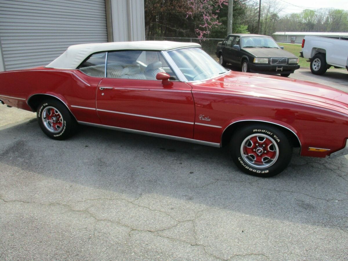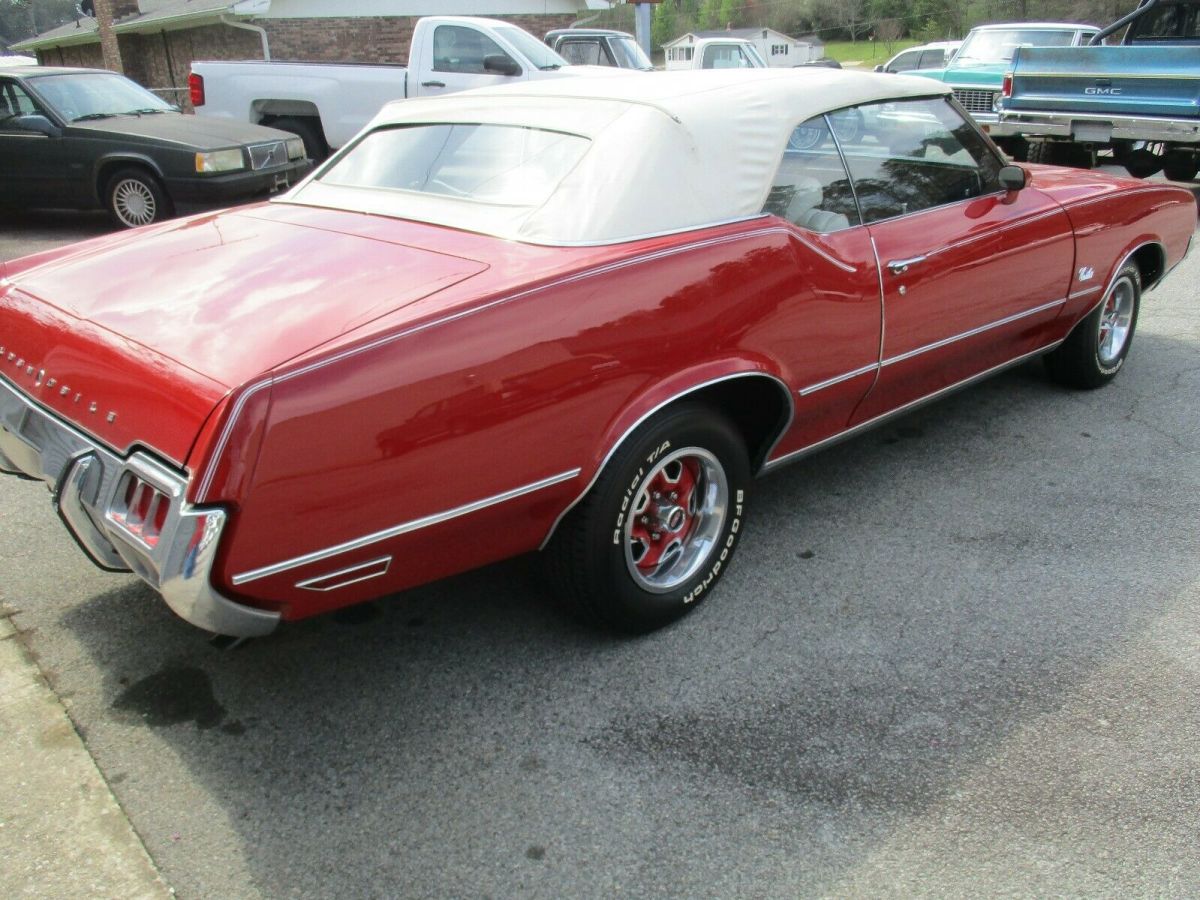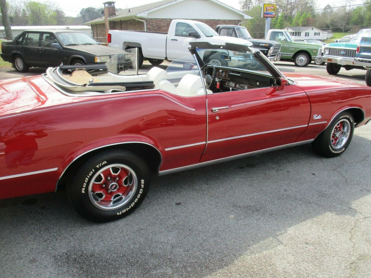 NICE CUTLASS SUPREME CONVERTABLE.ORIG RUST FREE CAR,350 ENGINE WITH AUTOMATIC TRANS POWERSTEERING AND POWER BRAKES.LOCAL CAR SOLD NEW IN ATLANTA.RED WITH WHITE INTERIOR.GOOD TOP WITH ORIG INTERIOR STILL IN GOOD CONDITION .PAINT IS A 8 ON SCALE OF 1 TO 10.CAR RUNS AN DRIVES GREA, AIR IS COLD.POWERTOP WORKS GREAT.THIS CAR HAS BEEN LONG TERM OWNED HERE LOCALLY.THIS CAR STILL HAS THE PAINTED ON PINSTRIPES NOT TAPE, I HAVE A GOOD DESCRIPTION FROM THE PREVIOUS OWNER FROM 30 YEARS AGO.CHECK THE PICTURES AN READ IT.THIS IS A GOOD CRUISER CUTLASS U CAN DRIVE ANYWHERE.ALSO HAVE PAPER WORK AN RECEIPTS BACK TO THE SEVENTYS.QUESTIONS CALL 770 535 7311.CAR IS SOLD WITH GA REGISTRATION AN BILL OF SALE THANKS