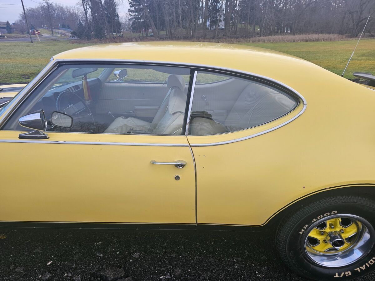 Experience the classic charm of the 1969 Oldsmobile Cutlass, a quintessential piece of automotive history. This coupe is a testament to timeless design, featuring a vibrant canary yellow exterior that complements its classic tan interior. With a clean vehicle title, this Cutlass has been maintained with regular servicing history, ensuring that it has been cared for with the attention it deserves.This fourth-generation Cutlass model boasts an 400 turbo transmission with hurst dual gate shifter, a 350 Rocket engine (a high-performance V8 engine), making for a smooth and effortless drive. It's a left-hand drive, perfect for those who appreciate the nostalgia and convenience of a traditional steering position. With four seats and only one previous owners, this classic car is ready to be a treasured addition to any collection.