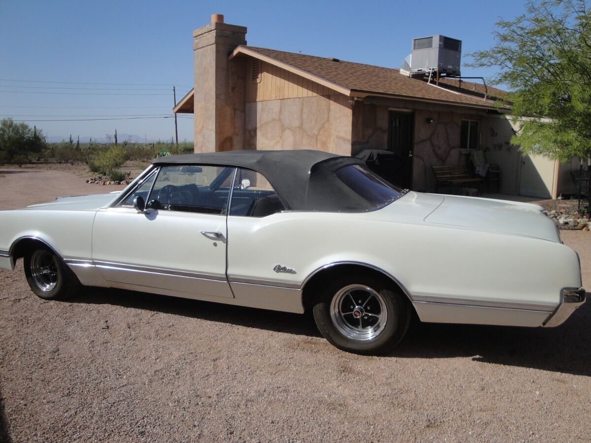 Beautiful classic Olds Cutlass convertible; new white pearl paint; interior beautiful and in great condition; top was new when I purchased it in 09, never in sun. |
