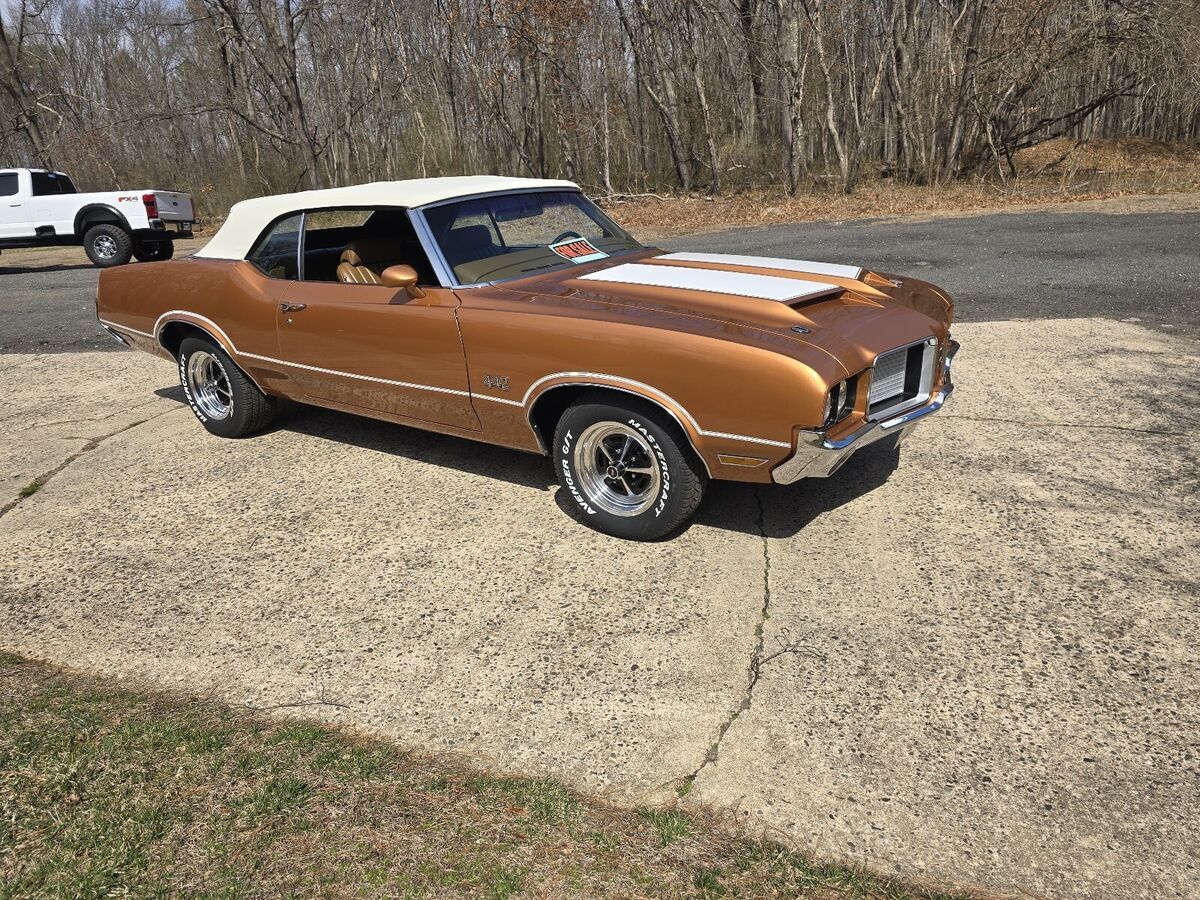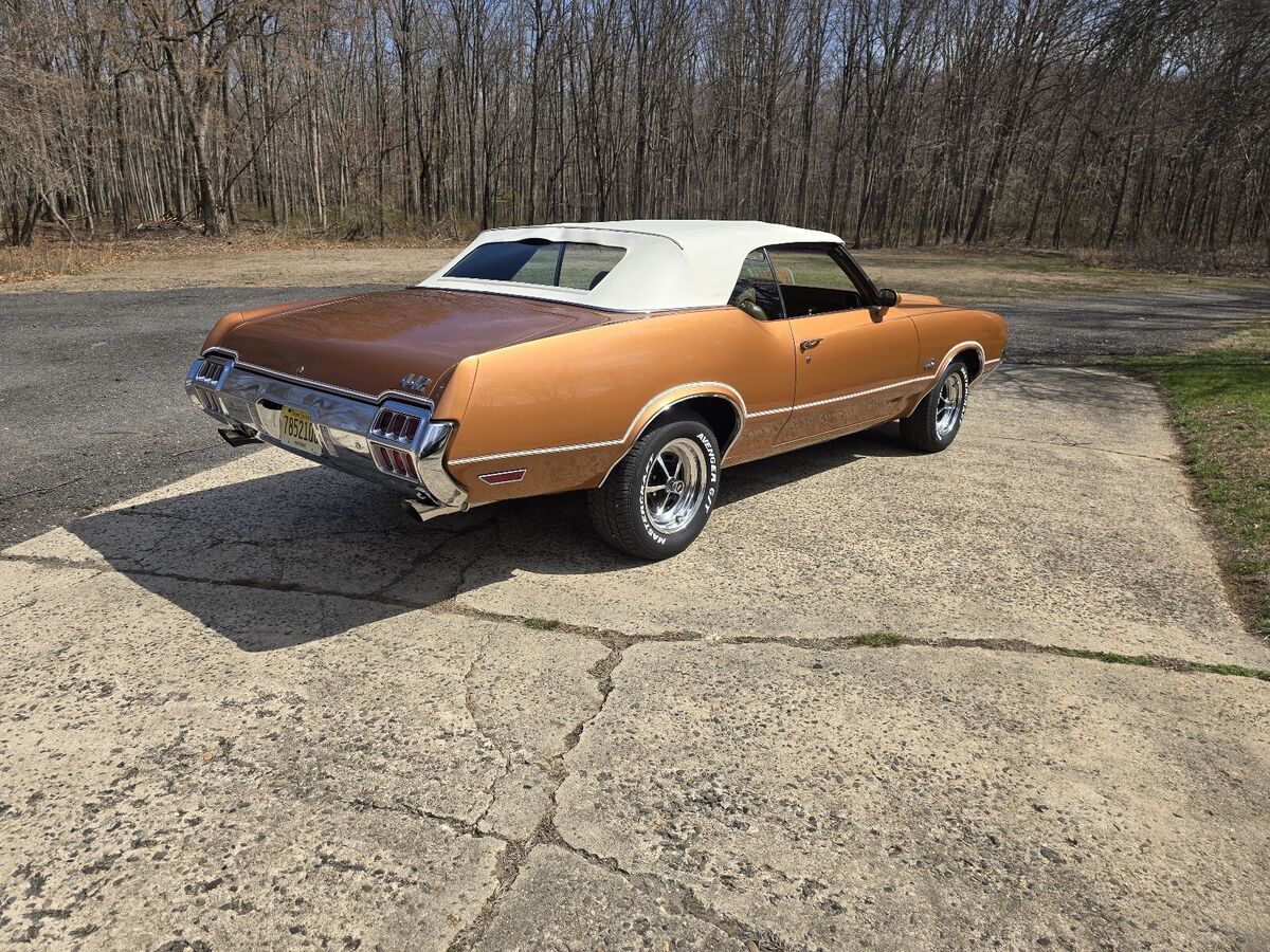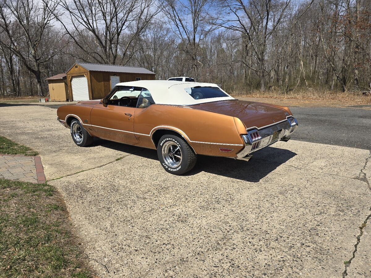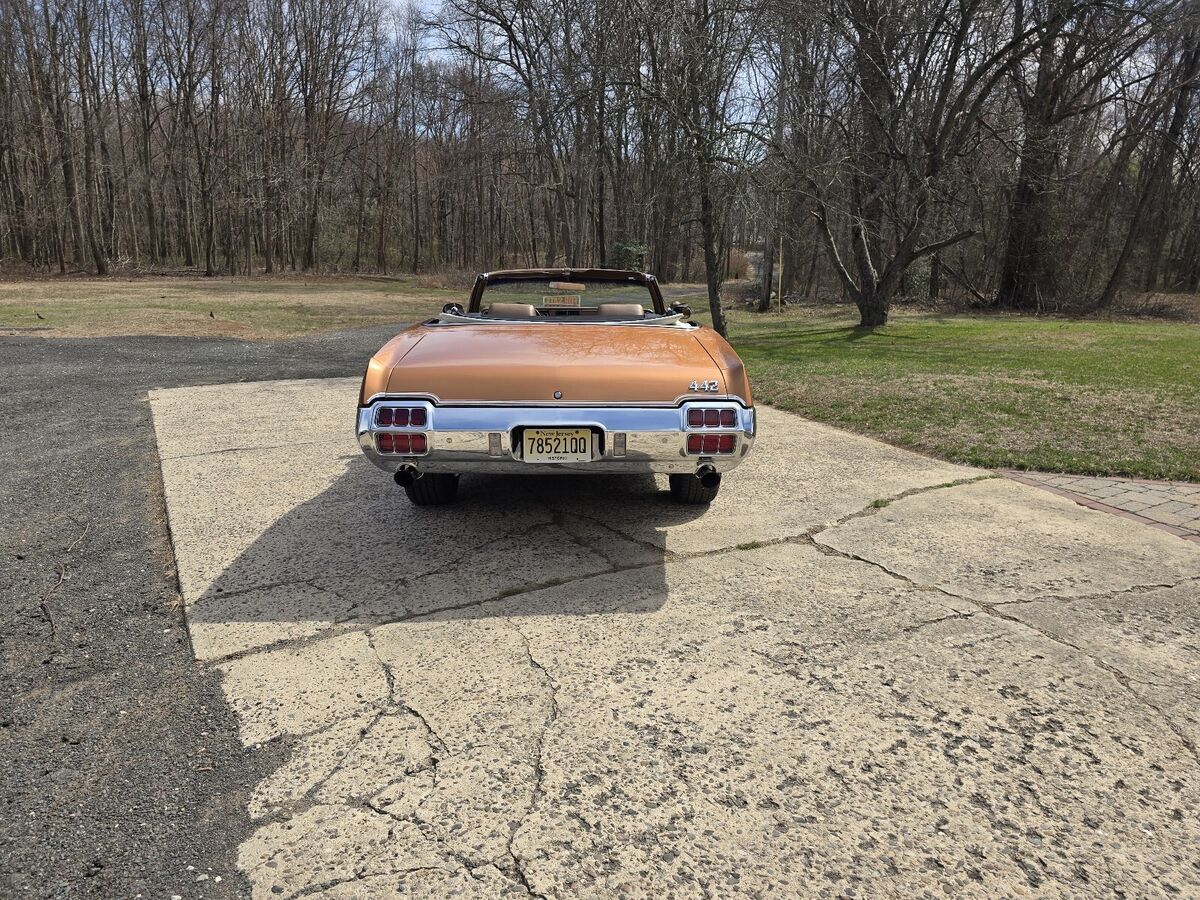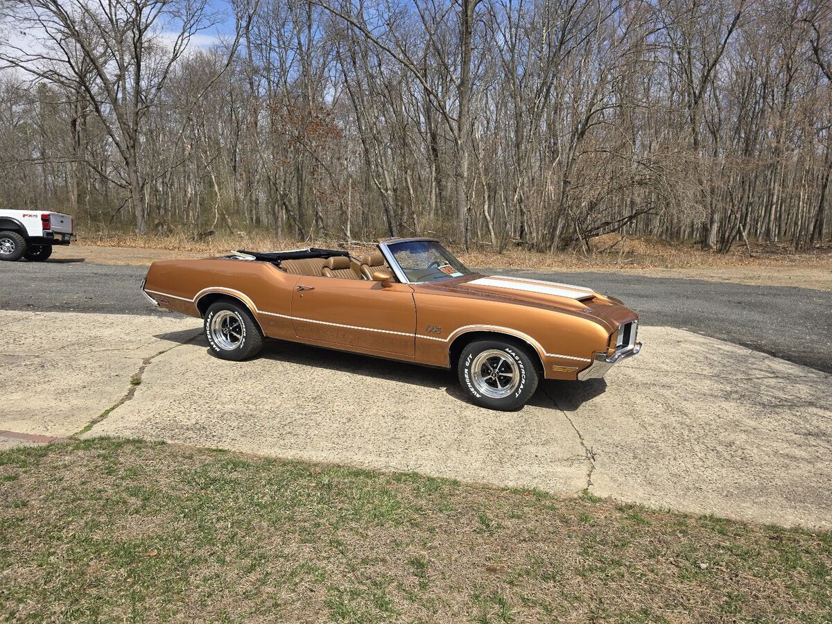 1972 442 convertible number matching car frame off restoration. High option car Vehicle Details 1972 442 convertible number matching350 auto factory rally gages. Power windows. Sport mirrors. His and her shifter power, top power, steering power breaks cold air conditioning. Tilt steering sport wheel. Trunk, light. This vehicle is gone, threw a full frame off restoration, complete new rebuilt drive train frame. Was blasted and painted original floors, original trunk. Has original panels? The underside of car was blasted body shoults and clear coded. Original color saddle bronze, beautiful, new white legendary interior I did not install the door handles straps because I'm not sure if somebody would like them off before I put holes in the legendary door panels. I can easily install them. For buyer. The complete interior is new. Right down to the floor mats. Everything works as should. It has original am f from radio that is not hooked up. But works because I paid a lot of money for that. Beautiful -, no cracks, all new green tinted glass. New key convertible, top with glass window, new cylinders, new lies and convertible motor. Very quiet, going up-and-down. The body was stripped and repainted. It's base coat, clear coat, color sanded to show quality. I added a new Thornton hood with Ram air. It comes with or without the rear spoiler, but I did not put it on because the convertible did not come with A. Rear wing. So before I put a hole in the trunk, it's up to the buyer. All new Chrome, all new lenses, new grill, assemblies. Or weather stripping, window felts all replaced, including convertible tap rubber. Complete new suspension, including all new control, arms, uppers and lowers front and rear boxed in rear. All new stainless brake system, all new fuel system. K y b gas shocks, new coil springs, complete front end steering suspension new new thornton exhaust manifolds with pypes 2 1/1 stain, the steel exhaust system. Upgrade it to new 15" polished aluminum ss1 wheels, new tires also come with original 14" inch wheels the car runs beautiful and extremely tight, just under1000 miles on complete restoration as you can see in the pictures. The car speaks for itself and done right? This is a beautiful show. Car ready to be enjoyed. Or take it to car shows the trunk was nicely. Splatter, painted with brand new spare Jack assembly. If you have any questions or offers, you can contact me at 732 742 2793 i'll answer any and all questions that you have if you have under 50 positive feedbacks contact me before bidding on this car or I will have you removed. This is an auction. make sure you have the money and funds available before you bid. I'll work with buyer to get them. The best shipping rates. Fire is responsible for shipping. I'll help out in any way. Car will be safely stored inside until picked up. This is a very nice investment. Good luck with bidding.Dave |