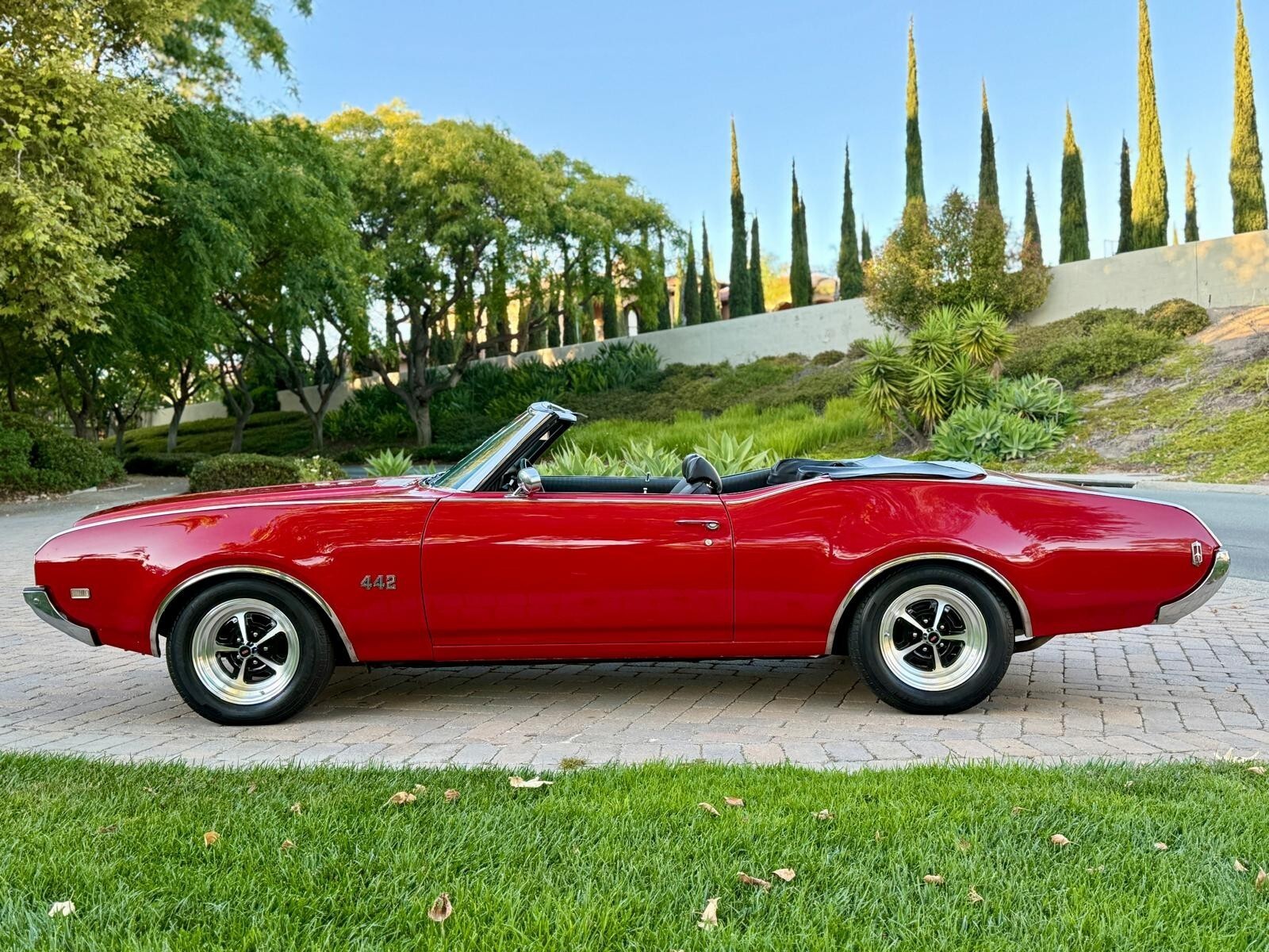 PLEASE CALL WITH ANY QUESTIONS AT 76O 8O5 803EIGHT. This is a very nice 1969 Oldsmobile 442 Convertible that is ready to take a cruise down the Coast the day that you get it. This is a real 442 from the factory, not just a Cutlass clone with badges. It is a genuine 344 VIN from Oldsmobile. The car is in great condition. It is a lifelong Southern California car that is rust free and very straight. The paint is in excellent condition. The floorboards, frame, and trunk pan are all excellent. The 442 is powered by a professionally built Olds 455 with Edelbrock aluminum heads and Edelbrock intake. The car is much stronger than a stock 400 c.i. example. It is fast and fun but still has great street manners. Turbo 400 automatic transmission. The car is equipped with power steering and power front disc brakes. Almost new 16 inch Olds SS1 look wheels with excellent tires. It gives the car a vintage look with a modern touch. The chrome is very nice. The black power top is in good condition. It still has the glass rear window. The factory black bucket seat interior is in great shape. The upholstery is excellent. The dash is nice. Oldsmobile Rally spoke steering wheel. The engine compartment is extremely clean and nicely detailed with plenty of chrome. All in all, this is just a great example of a rare 1960s Muscle Car that is ready to put the top down and have some fun! Clean, clear CA title in hand. Located in Bonita near San Diego. I am not using Ebay Secure Checkout, any Escrow services, or any other of those weird options. You are welcome to fly out and I will pick you up from the airport for an in person deal or a simple bank wire transfer and I will be happy to work with your shippers to make sure the Olds gets on it's way to your front door safely. If you do not want to do that, please do not hit the Buy It Now button. Please call if you have any questions.Shipping Buyer is responsible for shipping costs. I can cooperate with your shipper. This vehicle is advertised on other websites, so I have the right to end the auction early if it gets sold. Payment Please, be ready to buy when you click. A non-refundable 10 percent deposit is due when the auction ends. The final payment is due within 3 days after the auction ends. Balance is to be paid via cash in person or a certified bank wire transfer. The winning bidder needs to contact me within 24 hours of auction end to make payment arrangements. Please, arrange all financing prior to bidding. If you are not sure about anything, please don't assume - just ask. I'm very easy going and will help in any way I can, but, please, be absolutely sure that you are ready to buy when you bid. All non-paying bidders will be reported to eBay. Disclaimer People have different opinions and expectations of older vehicles. It is your responsibility to personally inspect the vehicle or send a third-party inspector that will perform an inspection to your satisfaction. Remember, this vehicle is a classic car and even though I've tried my best to describe it, it can have some imperfections which I'm not aware of. Due to vehicle age all sales are "Final" and "As Is". Thanks and good luck!
