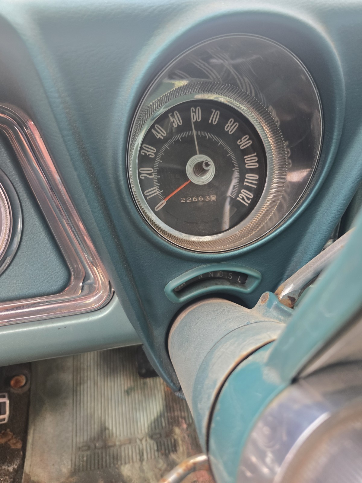 Very great car, with little surface rust on it. It had original engine pulled, but has original 2 speed transmission in it. Also has original accessories under hood like a/c compressor. It will need a full restoration and it is a great project car, it does have 22,663 original miles on it. It has original floor mats with little wear in them and the door frames with trim are hardly worn showing evidence of little use. |