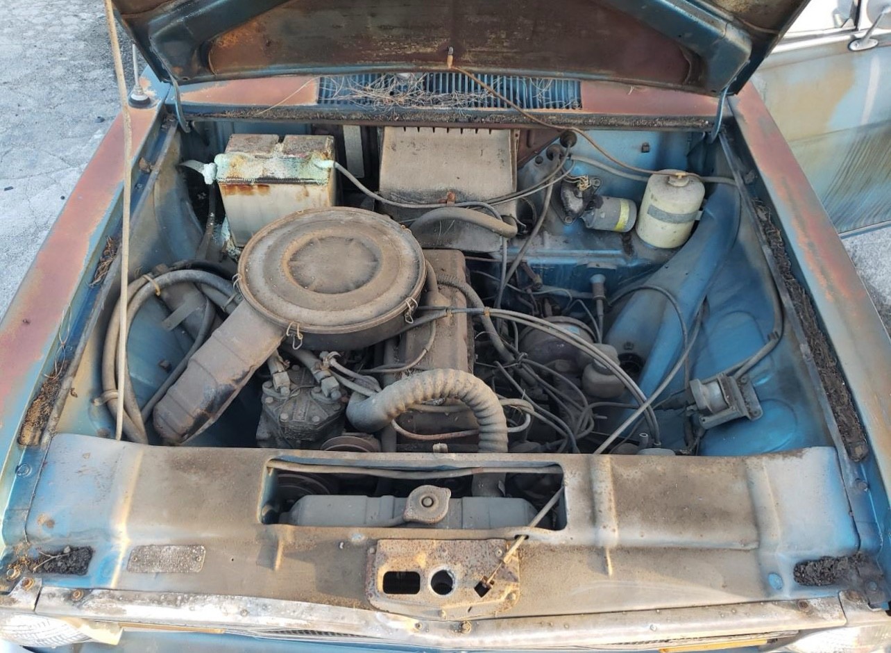 1-Owner California car!….. rescue from Storage after sitting abandoned for what it looks like to be 20 to 30 years. Very rare car near impossible to find if you’re looking for one to restore you won’t find one more solid than this one California car with rare AC option. We have the original pink Slip/title ……..No, you are not driving it home but its does start with starting fluid( google it if you never owned an old car) . Bring a Trailer or We can get it shipped to you. . Vehicle Details Although it has a lot of potential and very solid body, frame/Undercarriage due to the fact that had spent all its life in California, but it is no doubt a Full project car, recomended for knowledgeable buyer with classic car restoration experience. very little rust mainly surface, which creates a beautiful patina which I would personally keep if I was restoring it, just make the interior, beautiful and clear the exterior maintain the patina and make it a nice driver. |