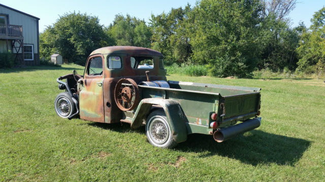 I built this truck in 2012, ence it has a clean and clear 2012 builders title with no leins. Chevy chassis, 948 dodge 5 window cab, 948 willys bed with tailgate, llis-chalmers headlights (converted to halogen), ored and built chevy 350 engine, 5 bel aire wheel well headers flipped side for side and upside-down, ustom exhaust tubes, uncie 4 speed transmission, ud light gas tank, nd wired like a 1975 chevy pickup (diagrams included). Very fast, ery loud, nd very fun. Street legal-ish in Kansas. Was driven on city streets and dragstrips. Runs and drives. Out of all the fast cars and bikes I have driven and built, his one has by far gotten the most attention at every stoplight, ragstrip, nd gas station. I have never gotten a single ticket in it, ut lots of thumbs-ups from our fine officers. Great conversation starter, nd lots of people asking for rides. I even drove away from my wedding in it :). If you have any questions feel free to message me; serious bidders only. $500 deposit required within 48 hours of auction ending, will not ship, ocal pickup only. This vehicle is in "AS IS" condition and I will not accept returns or issue refunds. Please only bid if you intend on buying any enjoying it. https://youtu.be/oryIf1lT8Tcstartup video