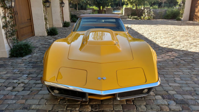 VERY clean and solid C3 Vette Conv. from Tx. Nicely equipped with hard and soft tops, -Speed manual transmission and Factory AC with upgraded R-134 rotary compressor. High quality paint job withgreat color combo of bright Yellow exterior and hard top, nd saddle Tan interior and soft top. Excellent interior, hrome and trim. Runs, rives and sounds great. Factory warranty replacement 427 block that's very original in appearance, nd a great tone with aftermarket headers, luminum intake and Edlebrock Carb. Very reliable and powerful. 4-Speed shifts quick and smooth. No overheating. Great oil pressure.Mileage shows 43,600 but I have no documentation to say that's original. True turn-key condition. Priced for quick sale at $28,900. Please call Mike at 480-773-2496 for more information. Serious inquiries only please. NO 3rd party internet sales call...