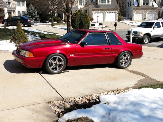 | This is a 1990 Ford Mustang LX coupe, that has been completely restored inside & out. Car has been painted with PPG G2 Z code,car has all new moldings,weatherstrips,glass,door handles,lock cylinders,door latches, window motors,door lock actuators,belt moldings,window run channels,new cowl,new wiper arms,all new headlight set,tail lamps & emblems,also has 1.5 Cervinni fiberglass hood.Engine has a new Edelbrock performer 2 intake,accu fab 70 mm throttle body, 90 mm pro-m mass air meter, Anderson power pipe,vortech supercharger,new ford racing valve covers, aluminium heads,Lunati Voo Doo cam & roller rockers, new electric water pump,new fluidine radiator,new electric fan with custom shroud,all new belts & hoses,msd rev limiter box,Mac long tubes,h-pipe into 2.5 inch stainless flow master kit.Front & rear suspension includes Bilstien srtuts,shocks,Eibach lowering springs, Maximum Motorsports k- member brace,strut tower brace,caster camber plates,sub-frame connectors,tubular rear control arms, & rear track bar. Ford H/D rear end upper control arms.Rear end 8.8 completely re-done with all new bearings,seals,373 ford racing gears, aluminium rear end cover, 31 spline Moser axles with 2.5 inch studs & a Detroit tru-trak posi unit. Aluminium drive shaft, trans was rebuilt by Astro performance, installed a Quick time shatter proof Bellhousing,Center force dual friction clutch,Hurst quick throw shifter.Tires &wheels 17x8 cobra R with Nitro 555 radials245/45 R 17 in front, & 17x9 cobra R 275/40 R 17 rear drag radials.Drilled & slotted rotors,all new calipers, stainless steel brake line kit from front to back.Complete new fuel system from Aeromotive includes new tank,braided lines,fuel pumps,fuel rails,fuel regulator, 60lb. Ford Racing injectors.Car was tuned by JPC in Millersville. Interior has been completely replaced new seat covers,new foam,new carpet,new headliner,new floor mats,new door panels. Windows tinted with 3M 20 percent film.Car is being sold as is, no warranties.I reserve right to end Auction @ anytime for local purchase & pick up. | On Jul-24-18 at 18:13:32 PDT, seller added the following information:Vehicle has no remaining warranty & being sold as is.