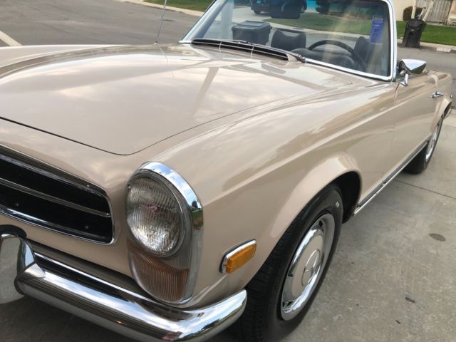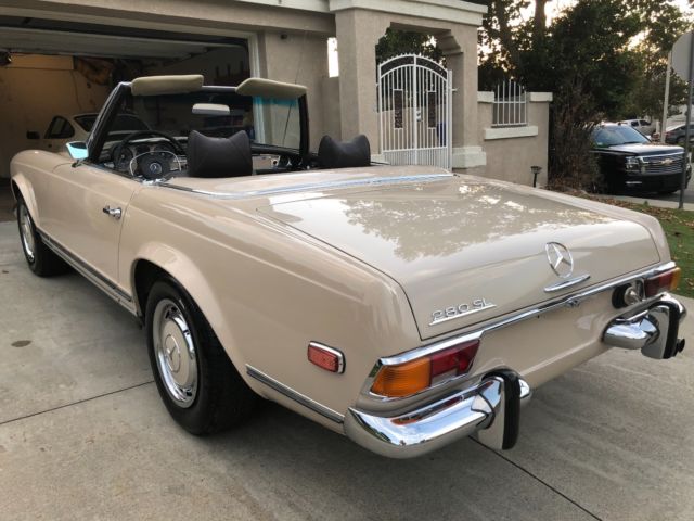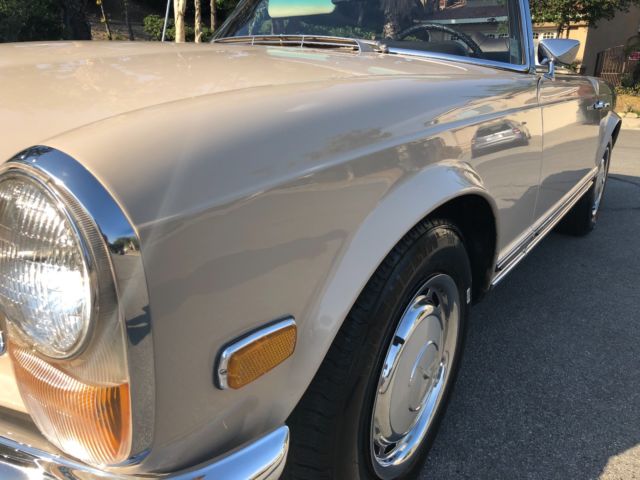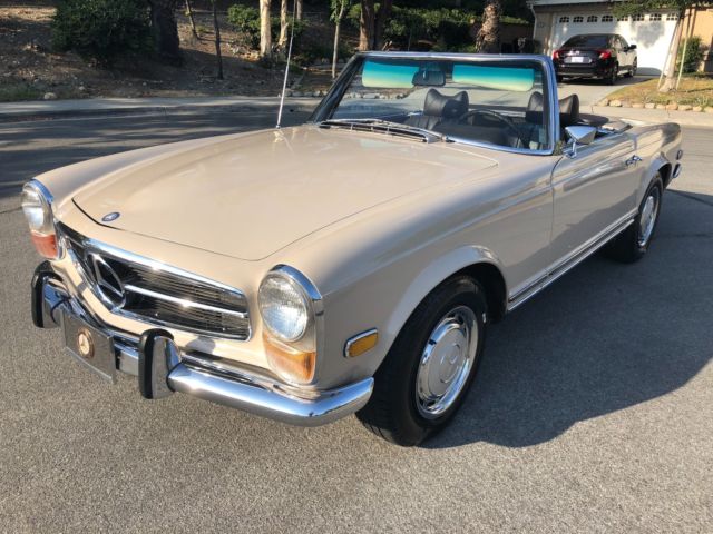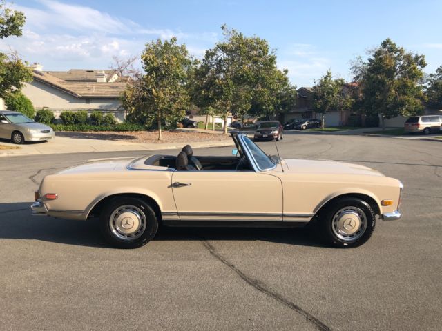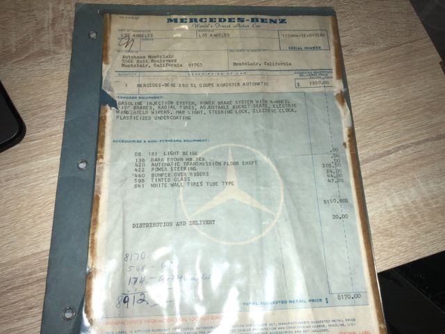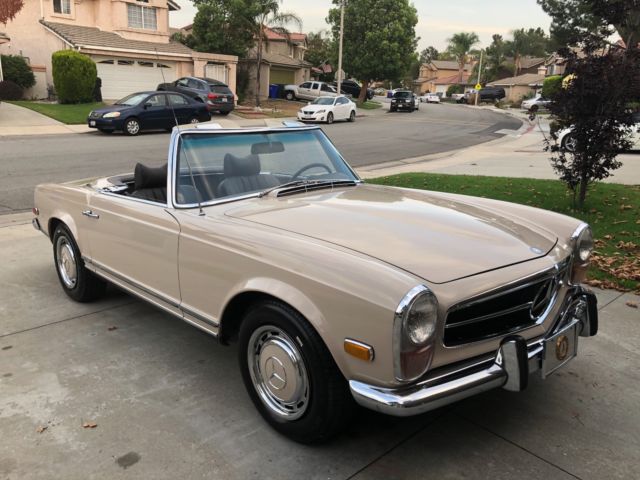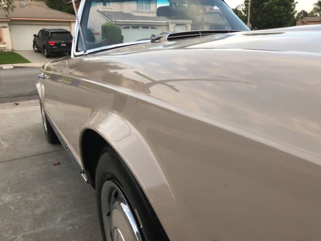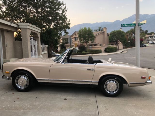 1970 Mercedes 280SLAutomatic 2 Tops Soft Top & Hard Top Ipromise you youwont findanother one with this paperwork and allfactory panels and spot welds.This is investors Grade This 280SL was originally California car bought right here in Montclair California Mercedes dealership back in11-26-1969 Then owner moved to Arizona most of its Life Never saw heavy rain or Snow.owner took very good care of it No Accidents. 1 Repaint same color Color code 181 Light beige over Chocolate Brown Factory Fenders. Factory Panels Factory Interior. Factory Floors Factory A/C Still Works blows Cold Factory motor. Factory TransmissionMatching Numbers! NO LEAKS!!!! Has Factory Spot Welds all around From Front To Back Also Head light notches on fenders which shows never in accident or replaced ( This car was babied all its life ) Has Spar tire booklets Factory books also factory warranty card data sheet Also has Factory dealer Invoice Window Sticker ( New Tires ) (New Breaks) (Freshly Tuned Up) Recently we had the MotorValve Job redone Along all newgaketsfrom afamousGermanMercedesspecialiston 7-15-2018 withreceipts cost over $3000,00 This Car Was Serviced Most of its life in AZ Shop CalledSilver Star Motors incin Tucson AzHas all the stamps in the Maintenance book Everything Works Perfectly Starts Right up and Drives smoothTags & PlatesUpdated Radio works. Soft Top Has Some Rips Better toreplace it the color is chocolate Brown has few vary small scratches you canbarely see them near the hard top latches owner said it happened trying to take the hard top off it Requires 2 people to take off hardtop 100% Rust Free Matching Numbers0 Accidents. Paint looks Greatit Had 1 Repaint about 15 years ago same color. Has a CleanCalifornia Title on My Name TONS OF PAPERWORK FromDealership WhichI Promise You Will Not See On Any of These W113 That Are Online... The First Original Owner is a DR and he is Still Around and He is 98 Years Old comes withhe's Number !! See Video And ALLPHOTOS BELOW !! love