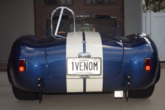 Molten magma hot deal! Asummer bargain! Glass bodied 427 S/C Continuation series, serial/VIN number CSX4952. This is one of the last of the 4000 series cars built. This is one very special serpent! This fully documented car is registered in the World Registry of Cobras! Built by the artisans of HST International, with fit and finish second to none! Titled and registered here in Hawaii as a "1965 Shelby Cobra" Under the hood: Roush 427SR, serial # 841 (spec sheet included), dyno'd at 502 HP with a "freight train" 521 Lbs/torque! MSD ignition with 9mm wires, 9.5 inch deck height, Iron 4-bolt block, Steel crank, H-beam rods, Forged pistons, Aluminum CNC ported heads, Roller "twisted wedge" cam, Dual plane intake, Holley 770 CFM"Street Avenger" 4-barrel carb (electric choke set up for mild tropical temperatures). This car weighs in at only 2600 lbs but punches at 502 HP! Cooling performed by the huge Fluidyne aluminum 4-core radiator, assisted by triple electric cooling fans (one massive puller & two up front pushers). Ceramic coated headers connect to the beautifully jet coated side pipes. Firewall and tunnel insulated to help keep cockpit temperatures down. Geartrain: Ram clutch assemble in the steel Quick Time bellhousing. Tremec TKO600 5-speed gearbox, (highway star) Shelby aluminum IRS differential housing. Chassis: stock 15" original Halibrand-styled pin-drive wheels. Original-style round-tube frame with 4" main frame rails, dual A-arms and fully adjustable coil-over shocks, rack & pinion steering, Shelby 4-piston front/rear-disc brakes with Shelby calipers; chrome roll bar, black powdered coated quick jacks. In the cockpit: Shelby gauges [with 'correct' reverse-winding speedometer], original styled hardwood-rimmed steering wheel. Period correct pedals, premium leather upholstery. Glove box, door map pockets, and American Shelby Cobra floor mats, Simpson lap belts. 2 sets of keys for ignition/glove box, & carpeted trunk. Battery cut off switch disconnects the dual (red) Optimum 6V (series wired) batteries. Genuine CSX4952 dash plaque (from American Shelby) mounted on glove box door. The stunning royalblue paint is gorgeous with correct Wimbledon white stripes. The paint is extremely deep with a look of another dimension-a must see! Clear bra on nose/rear fender well/rear lower fenders. Only 3818 miles! This beauty of a beast stored in a climate controlled garage here in Ewa Beach, Hawaii & had a recent application of Fluid Film applied to nuts/bolts/screws/grounds/etc/ underneath. Meticulously maintained with recent fluid flushes (brakes/clutch/coolant). Manufactures Statement of Origin (MSO) signed by the late Mr. Carroll Shelby. Car cover, and dash Hula girl included! Located in the state of Hawaii- island of Oahu.As a courtesy to you, seller will help with logistics of shipping preparation on this island - either ocean ship or Air Cargo, ensuring your Cobra is properly prepared and delivered to your choice of shipping company. Contact Andycall/text 808•386•2454. Must sell - moving. No reasonable offer refused. |