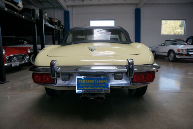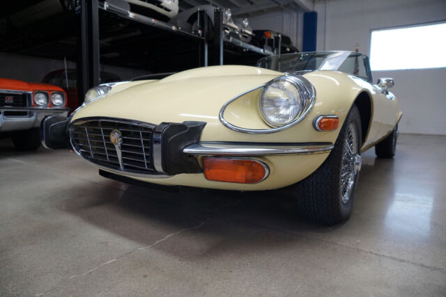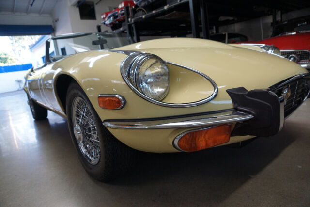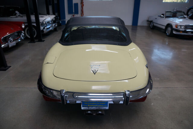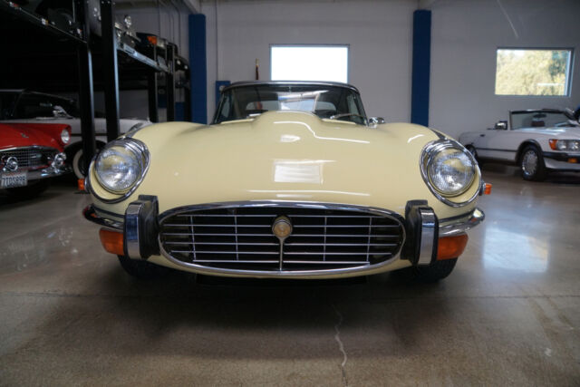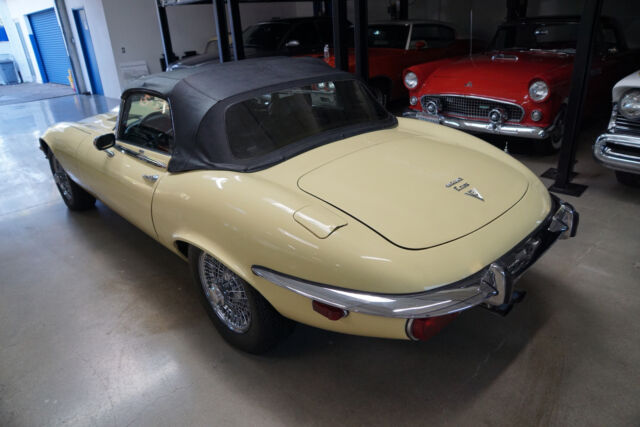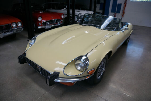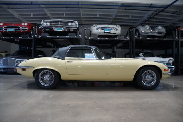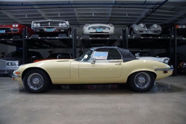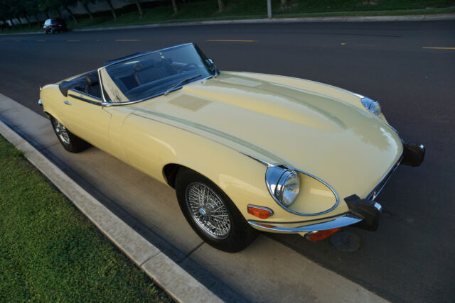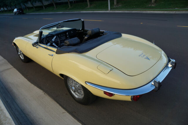 West Coast Classics are proud to present an absolutely exceptional and very rare barn-fresh (garage really!) find of a virtually completely original and stock example of this 1973 Jaguar XKE E-Type V12 Series III Roadster in its original striking 'Pale Primrose' Yellow color paint with a classic and all original 'Black' leather interior! A completely rust free example of this coveted penultimate year of the legendary E-Type Jaguar with its original matching #'s (7S12181L0) V12 engine with reportedly only two...owners since new and believed to be only 20k original miles, its original and very desirable 4 speed manual transmission and with all of it's original factory specifications and options including original Black leather interior and carpets, AM radio, power steering and air conditioning! This is a very rare factory 4 speed and air conditioned car and this beauty still boasts all five original chrome 'knock off' wire wheels and its original spare chrome wire wheel in the trunk and original matching Black convertible top and tonneau cover, factory 'knock off' mallet and jack!Recently purchased from the collection of the car's long term second owner and a car which was owned and stored for many years by this renown Saginaw, MI classic car collector in his climate controlled storage facility until his passing and which was one of the cars we recently purchased from his collection! The car's original matching #'s V12 engine runs as smooth as silk and the car drives exactly as it should with such low and believed to be original miles. The car must be driven and seen to be truly appreciated - drives straight as an arrow with no strange road wobbles, shakes or rattles - a truly remarkable daily driver that will give any modern day sports car a run for it's money! The 4 speed manual transmission shifts smoothly through all the gears and the temperature always remains cool!The car has no rust whatsoever with the floor boards and all the typical rust-prone areas completely original, solid and rust-free! The car shows no signs of any accidents of any kind and has a razor straight body. The car looks extremely impressive in it's original 'Pale Primrose' color paint and the car still boasts it's original Black color leather interior with the door panels, dashboard, seats and carpets all in very fine condition. The original Black color soft top is in great shape and the car has it's original matching tonneau cover. The factory chrome wire wheels are also in beautiful condition and the car has it's original spare wire wheel located in the trunk which of note has its all original wood trunk lining and the spare wheel compartment is all in remarkably intact and all original unspoilt condition.This is a rare opportunity to own a completely rust free example of an obviously always garaged and completely stock 1974 Jaguar XKE V12 Series III Roadster with its original matching #'s engine and 4 speed manual transmission with power steering and air conditioning and leather seats in very fine condition throughout with reportedly only 20K original miles with only two careful owner's since new! Although not a concours or fully restored example, this remains an even rarer and probably these days more desirable virtually all original rust free and unabused V12 E-Type Jaguar Series III Roadster and it is the ultimate unrestored example for the Jaguar enthusiast or any classic British sports car collector to add to their collection!