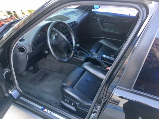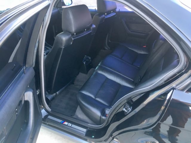 This is a very nice example of a 1993 BMW M5 3.6 liter 5 speed with approx. 147,900 original miles. Finished in Jet Black with Black leather interior. Power drivers and passenger front seats Heated drivers and passenger front seats Power Sun Roof Hand Free Mobile Phone Option Cruise Control Keyless entry Power windows Power door locks Power Steering AM/FM/Cassette with CD changer (disc loader is missing from changer in trunk) Bra (which myself or the previous owner never put on the car) Car Cover This car runs great. It's fast and tight. This is the last year of the hand built M5's. The doors close with precision and the AC blows cold. The paint has been detailed to a near mirror finish The interior and engine compartment have also been detailed. The interior very is clean with no rips, tears or odors. This vehicle has NOT been smoked in. The car retains the spare tire along with the tool kit and jack. 1993 was also the only year for the very cool twin stalk rear-view mirrors. The paint looks good but there are a few issues. There are very tiny chips of missing paint on the front of the hood. The car was keyed at some point on a portion of the front drivers quarter panel and the driver's door. It has been touched up with BMW paint touch up system. There is road wear on the paint along lower quarter panels near the wheel well. There are a few other light scratches and touch ups are noticeable upon close inspection. There are also flecks missing from road wear on the lower panels near the front wheels. These imperfections were very had to photograph. Everything works, windows, power seats, heated seats, sun roof, and all gages and the on-board computer. The radio has static and the remote key fobs are sporadic, and should be replaced, but it does have the two original keys and key less entry fobs. There is a small nick in the leather on the lower interior passenger door. The tinted windows have small imperfections on the passenger rear and back windows. Lot's of maintenance records. Call or text with questions, more details or photos. Please look through all the photos as they are part of the description. Overall this car is EXCELLENT AND BEAUTIFUL! Mark 760 275 4819 |