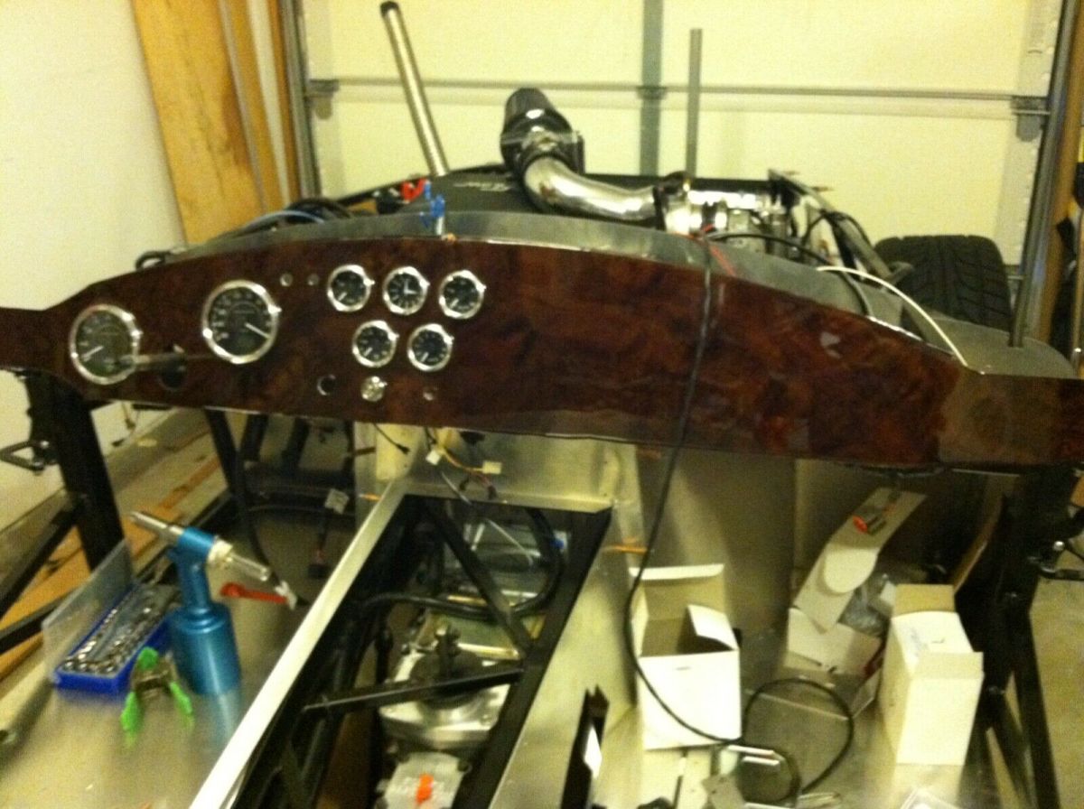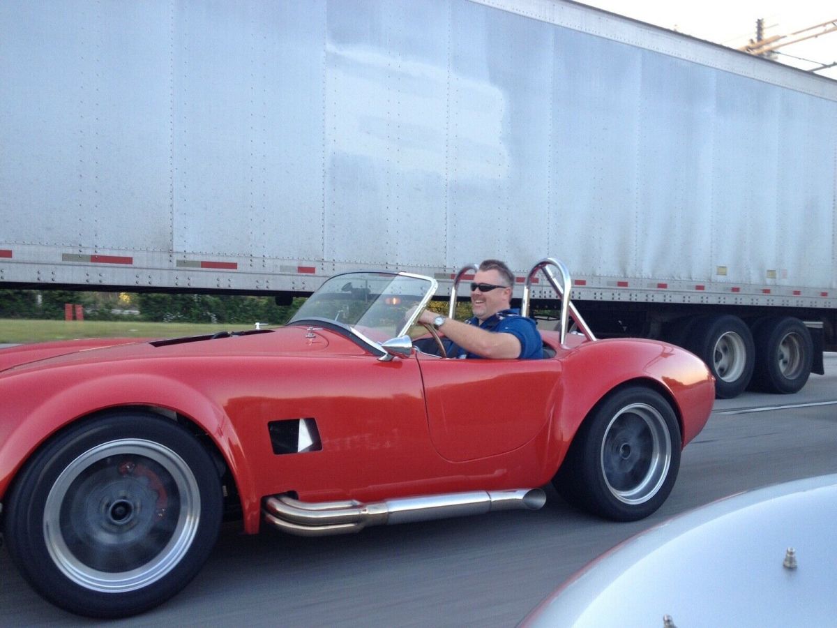 Factory Five MK IV AC Cobra replica kit with 3 link suspension, powder coated frame, fuel injected rebuilt 302 Windsor with Trick Flow intake. Tremec 5-speed manual transmission. 17 in rear and 15in front Halibrand replica style rims. Disc brakes on all four wheels powder coated red. Walnut wood veneer dash with Autometer gauges. Body still in gel coat with some work done to get body lines smoothed down. Dual roll bar with front & rear chrome bumpers. This is the Factory Five complete kit with some add ons