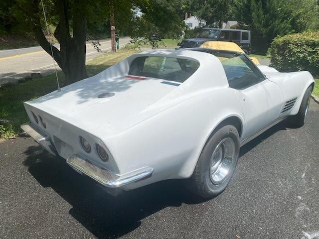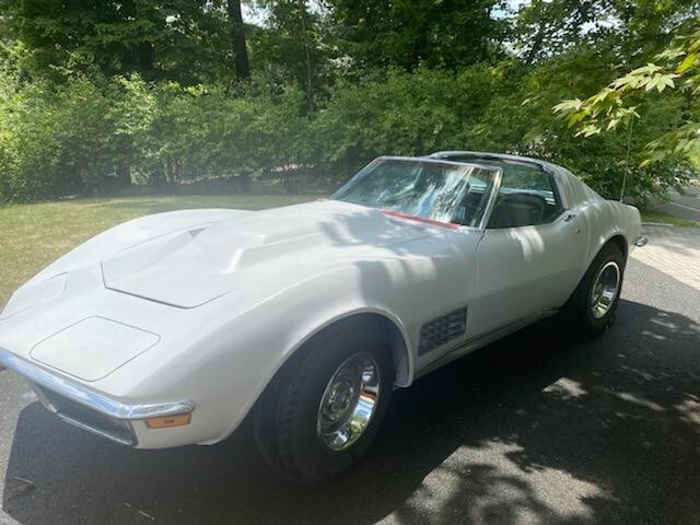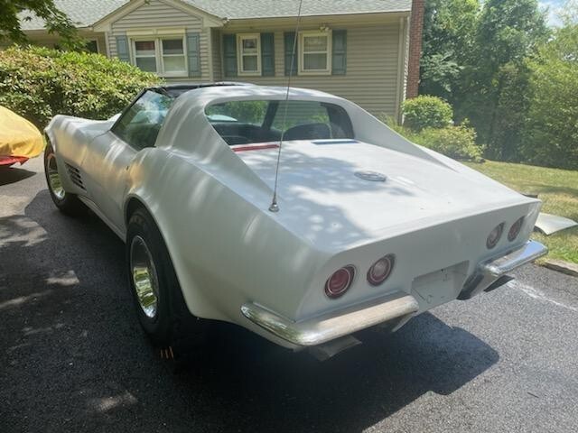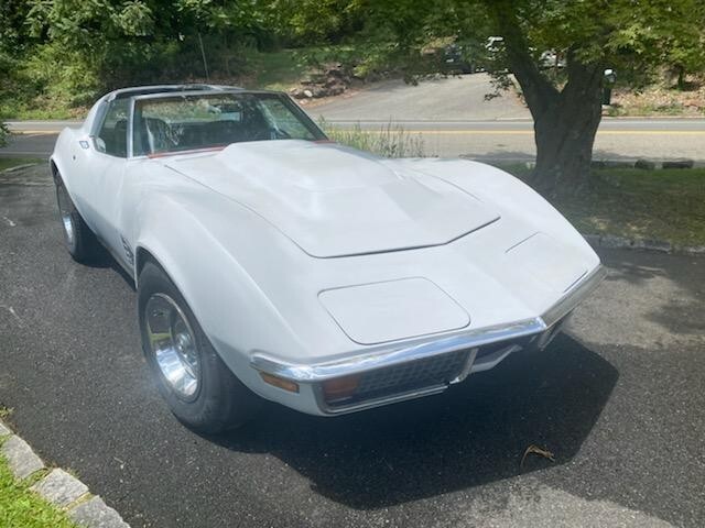 1971 Corvette coupe, 350 auto, motor not original. Has power steering, power brakes, power windows and factory AC but compressor is missing. The car is in primer and wouldn't take much to get it ready for paint. Original color classic white (Paint code 972) with black interior. Interior needs work. Has L88 big block hood. Car runs and drives but it's been sitting and should be serviced. Very clean frame and bird cage. Clean title. Drive as you restore it. I WILL NOT ACCEPT CARMEL AS PAYMENT! CASH OR BANK WIRE ONLY.