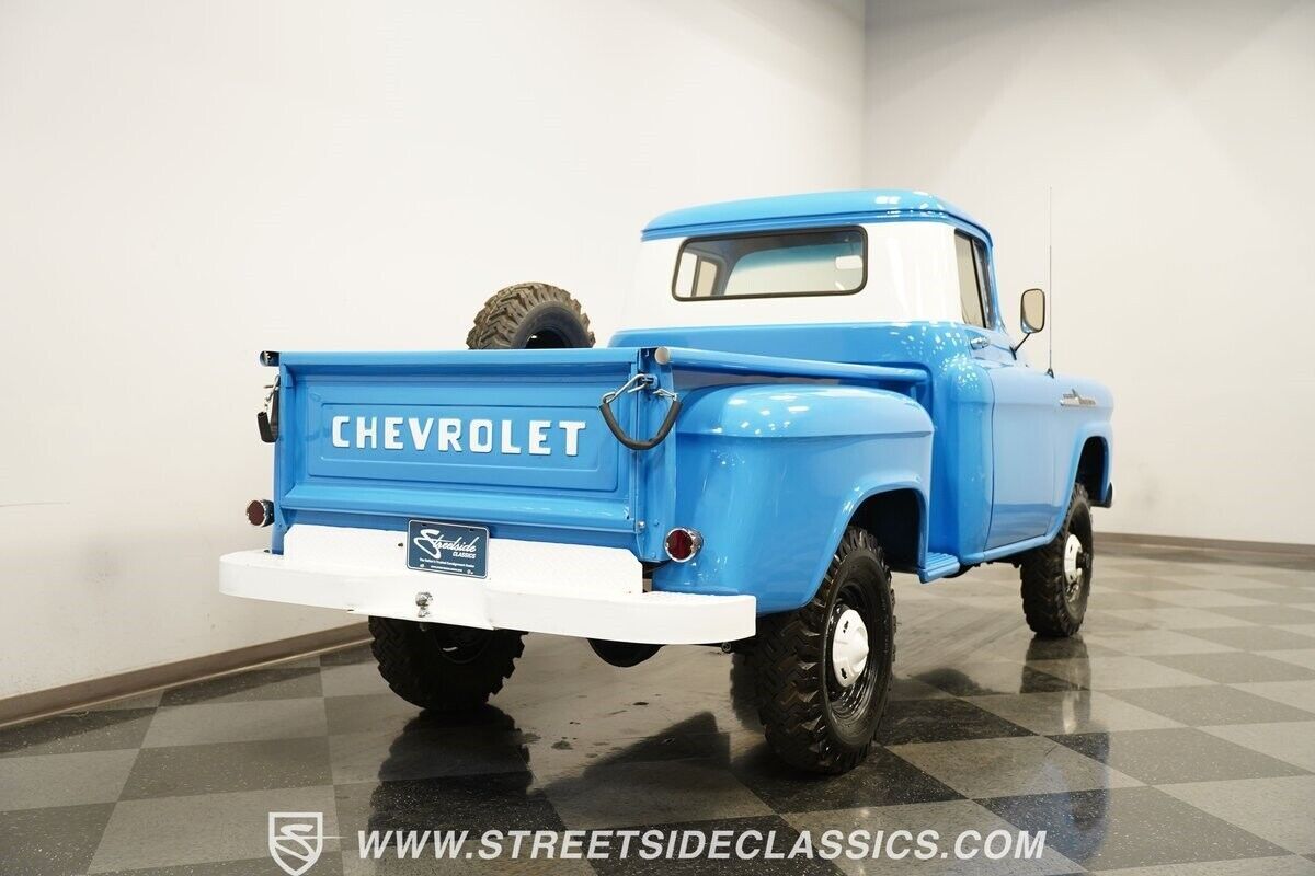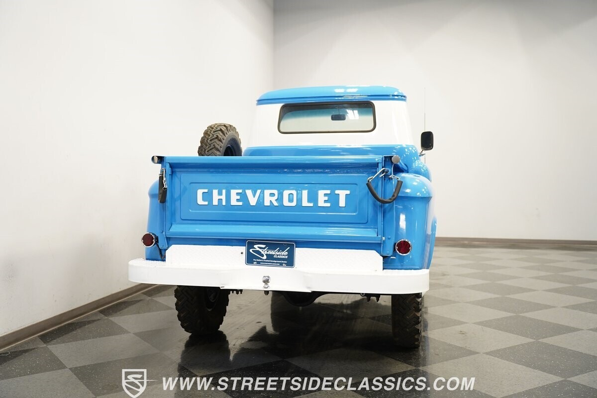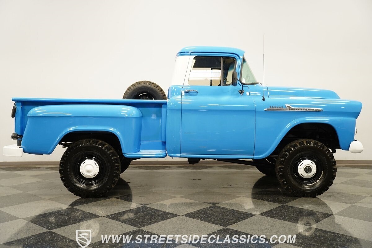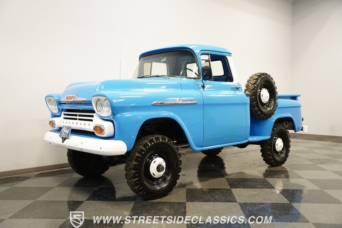 Vehicle Original VIN : 3A58W103146 3599-PHX 1958 CHEVROLET APACHE NAPCO 4X4 As you lay eyes on This 1958 Chevrolet Apache NAPCO 4x4, it's immediately clear that you're not just observing another pickup; you're beholding a rugged icon, rejuvenated to showcase its indomitable spirit. Cloaked in a two-tone palette of blue and white, its sturdy body is engulfed in blue, reminiscent of the sky over the Southwest, while the white accents mimic clouds, highlighting its power and poise. Rolling on 16" wheels shod in 7.50-16 bias ply tires, its stance is as commanding as the mountains it was built to conquer. The truck has received a full repaint, and its wooden bed has become a field of dreams for any cargo, marking its readiness for adventure. Stepping inside, the transition feels like dawn breaking over a serene landscape. Black and blue meld within the cabin, creating a harmonious fusion of practicality and style. The bench seat, a cozy embrace in blue cloth and black vinyl, anchors the interior's aesthetic, offering a vantage point from which every journey becomes a story. The floor shifter, a stalwart companion, stands ready to dance through the gears of the 4-speed manual transmission. Meanwhile, the AM radio offers a nod to simpler times when music and the open road were all the company one needed. Beneath the skin of This Apache lies the heart of a pioneer: a 235 CI inline-6 engine, a bastion of reliability and strength. Fed by a Qjet carburetor and paired with a 4-speed manual transmission, this drivetrain serves as a bridge between eras, offering a driving experience that's both visceral and engaging. The NAPCO 4x4 setup, an engineering marvel of its time, endows this truck with the agility of a mountain goat, ready to tackle less-traveled trails. With power drum brakes on all corners, its spirit is matched by its stopping power, while the solid axle suspension ensures durability over the roughest terrains. HIGHLIGHTS: • 235 CI Inline-6 Engine • 4 Speed Manual Transmission • Single Qjet Carburetor • Power Drum Brakes • Solid Axle Suspension Front and Rear • Upgraded Aluminum Radiator • New Exhaust Setup • Blue and White Full Repaint • 16" Wheels in 7.50-16 Bias Ply Tires with 2014 Date Code • New Mirrors, New Antenna • Black and Blue Interior with Bench Seat • Floor Shifter • AM Radio • Tons of Parts Receipts from Restoration • Very Old Receipts In sum, this 1958 Chevrolet Apache NAPCO 4X4 isn't just a truck; it's a legacy on wheels. With its enduring engine, a cabin that marries utility with comfort, and a four-wheel pedigree that's nearly impossible to match, this Apache is ready to write new chapters with its next custodian. Call today!