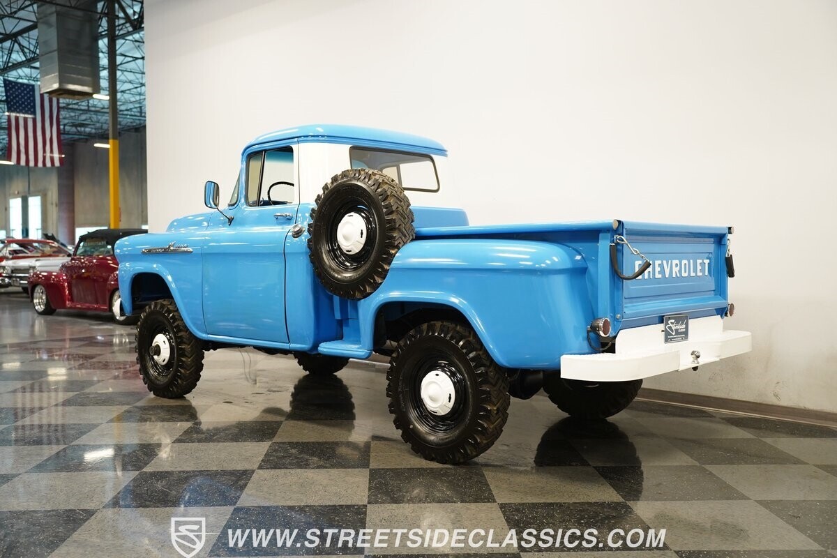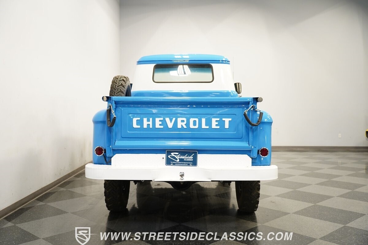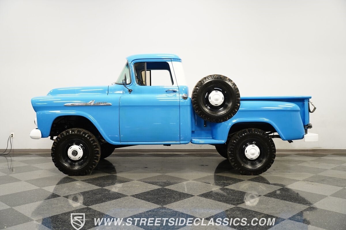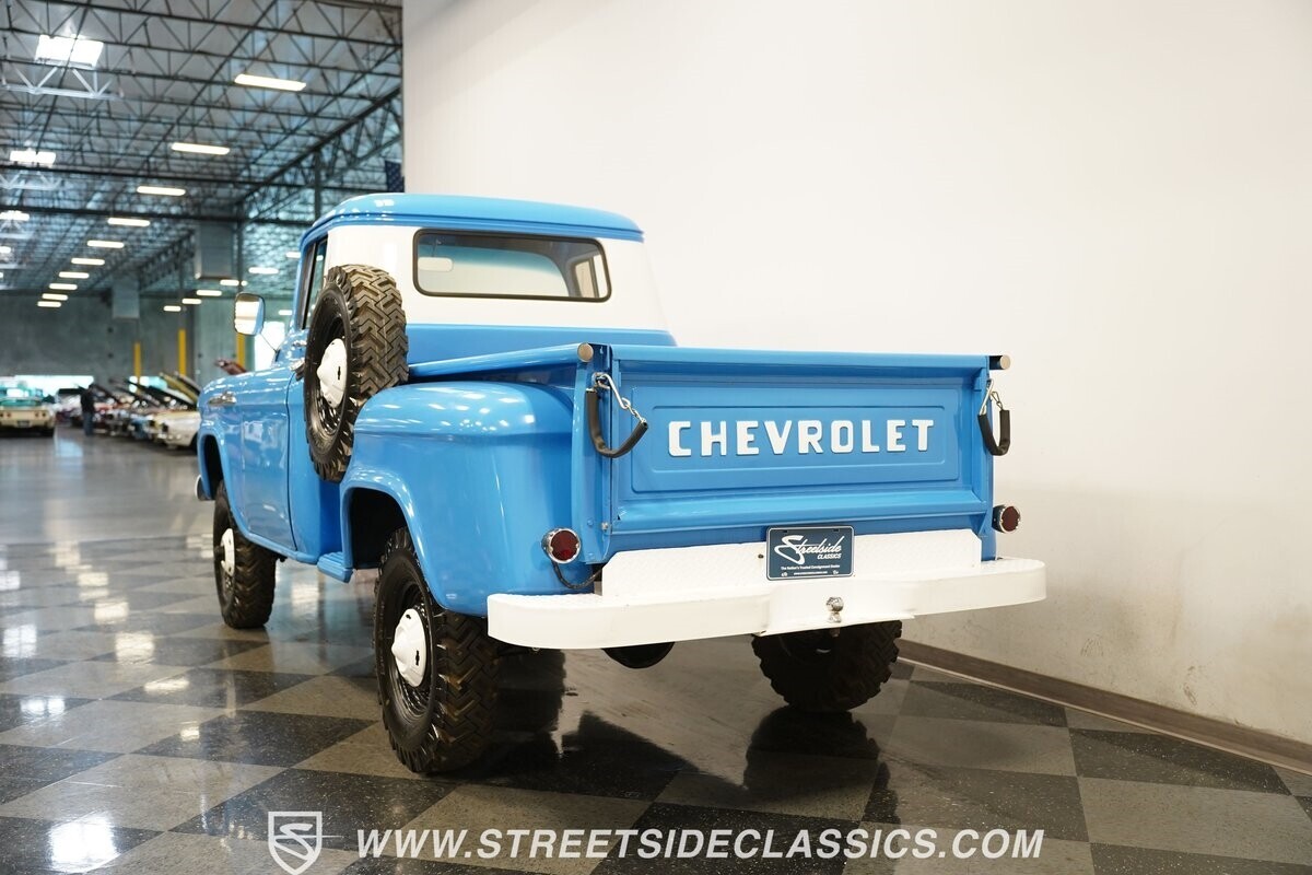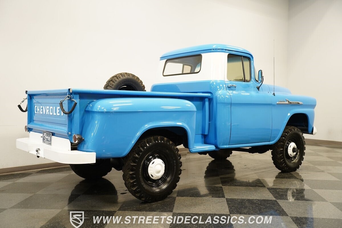 Vehicle Original VIN : 3A58W103146 3599-PHX 1958 CHEVROLET APACHE NAPCO 4X4 As you lay eyes on This 1958 Chevrolet Apache NAPCO 4x4, it's immediately clear that you're not just observing another pickup; you're beholding a rugged icon, rejuvenated to showcase its indomitable spirit. Cloaked in a two-tone palette of blue and white, its sturdy body is engulfed in blue, reminiscent of the sky over the Southwest, while the white accents mimic clouds, highlighting its power and poise. Rolling on 16" wheels shod in 7.50-16 bias ply tires, its stance is as commanding as the mountains it was built to conquer. The truck has received a full repaint, and its wooden bed has become a field of dreams for any cargo, marking its readiness for adventure. Stepping inside, the transition feels like dawn breaking over a serene landscape. Black and blue meld within the cabin, creating a harmonious fusion of practicality and style. The bench seat, a cozy embrace in blue cloth and black vinyl, anchors the interior's aesthetic, offering a vantage point from which every journey becomes a story. The floor shifter, a stalwart companion, stands ready to dance through the gears of the 4-speed manual transmission. Meanwhile, the AM radio offers a nod to simpler times when music and the open road were all the company one needed. Beneath the skin of This Apache lies the heart of a pioneer: a 235 CI inline-6 engine, a bastion of reliability and strength. Fed by a Qjet carburetor and paired with a 4-speed manual transmission, this drivetrain serves as a bridge between eras, offering a driving experience that's both visceral and engaging. The NAPCO 4x4 setup, an engineering marvel of its time, endows this truck with the agility of a mountain goat, ready to tackle less-traveled trails. With power drum brakes on all corners, its spirit is matched by its stopping power, while the solid axle suspension ensures durability over the roughest terrains. HIGHLIGHTS: • 235 CI Inline-6 Engine • 4 Speed Manual Transmission • Single Qjet Carburetor • Power Drum Brakes • Solid Axle Suspension Front and Rear • Upgraded Aluminum Radiator • New Exhaust Setup • Blue and White Full Repaint • 16" Wheels in 7.50-16 Bias Ply Tires with 2014 Date Code • New Mirrors, New Antenna • Black and Blue Interior with Bench Seat • Floor Shifter • AM Radio • Tons of Parts Receipts from Restoration • Very Old Receipts In sum, this 1958 Chevrolet Apache NAPCO 4X4 isn't just a truck; it's a legacy on wheels. With its enduring engine, a cabin that marries utility with comfort, and a four-wheel pedigree that's nearly impossible to match, this Apache is ready to write new chapters with its next custodian. Call today!