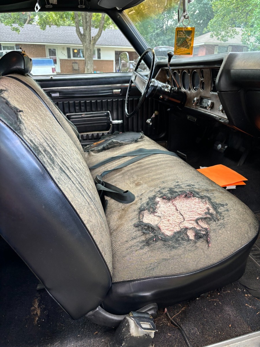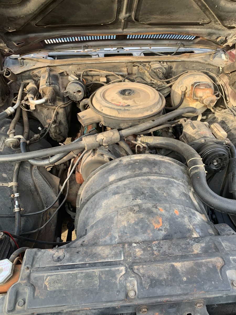350 crate motor with 60 thousand miles on the motor well kept and ran ( started up) hair line crack on top of radiator easy fixing with epoxy or soldering doesn't leak when just letting it run that and the front seat needs reupholstered has good brakes tires minimal rust underneath mostly some in the trunk area Ac works fine motor works fine paint is sun faded ( added the miles on the motor as the mileage < just needs a little TLC I Hope someone can have fun with this ride I took on to many projects it's a very sharp rare looking ride 500$ non refundable deposit comes with clean title This is gonna be a good car for someone to drive. The radiator was soldered Where are used to be cracked? It drives really well. I think this car is going to drive for quite a while pretty well unless someone’s trying to just run it into the ground. Purposely some of the seals like for the back window need to be changed.Car has been garaged and maintained the sun fading on one side is from the light coming the the garage windowupdated radiator was soldered as most prefer originalVery nice driving car not seeing any issues has original radio and looks like original speakers in the back radio does not function I had to test drive and find out it runs wellChanged the oil Fuel filter was changed runs pretty well gets up and goes pretty fast repalced fuel pumpit drives really well and handles wellit will not drive right now becuase they fly wheel is cracked an not engaging to torque convertor bought a new fly wheel of fly plate but have yet to get someone to install itThis vehicle is still very nice I should have the title at any moment will be this week probably can always send the title once received will update listing when I knowTitle in hand the description was a timeline it’s been garaged for many years ; was driven few weeks I have the flex plate I got a new fuelPumpAnd filter put it it quit shifting or going forward when in gear because there is a bolt loose the flex plate or fly wheel is not engaging with the torque converter; have to many more important vehicle projects than wanting to mess with this oneFactory duel exhaust replacement four barrel Holley carburetor