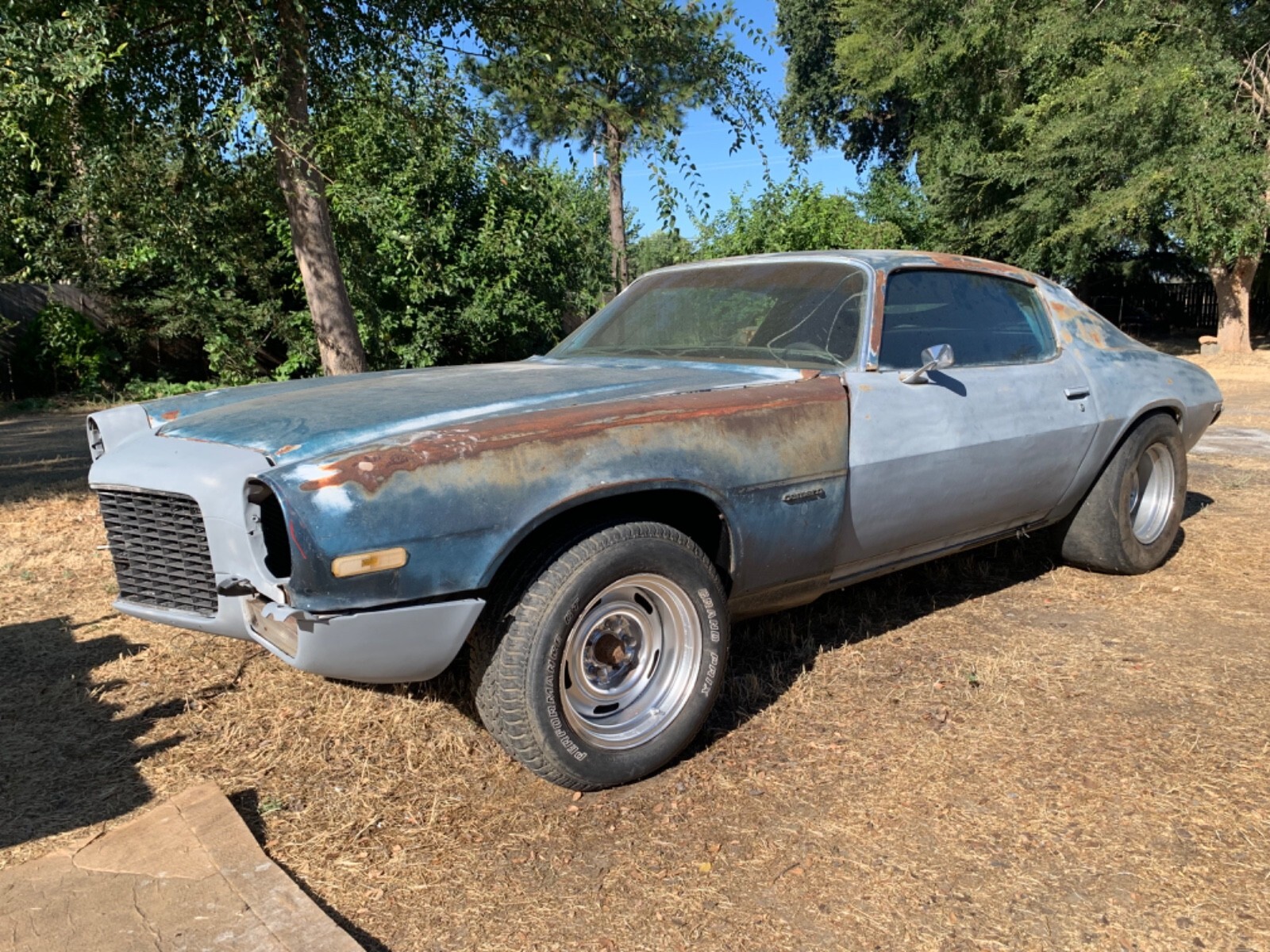 1970 camaro with 350 engine had it running back in 2016 (have a video) have not done much to it since, needs full restoration I have back seats, California blue plates,other things not in pictures. Very little rust, exterior Mainly surface rust, Sold as i, with Bill of Sale, No Title. Out of DMV system. Front clip was from another camaro. Not sure if it is an RS/SS, It does have a 12 bolt rear end and sway bars back and front. also Tank has 2 gas lines. |