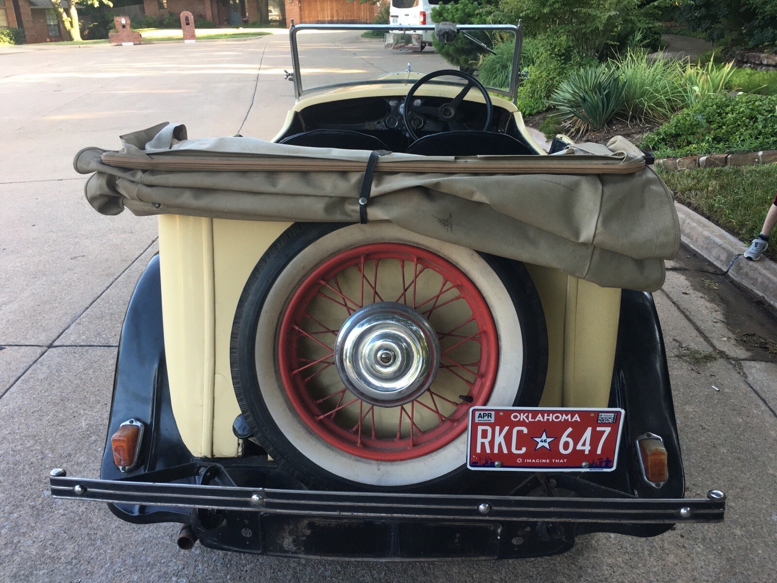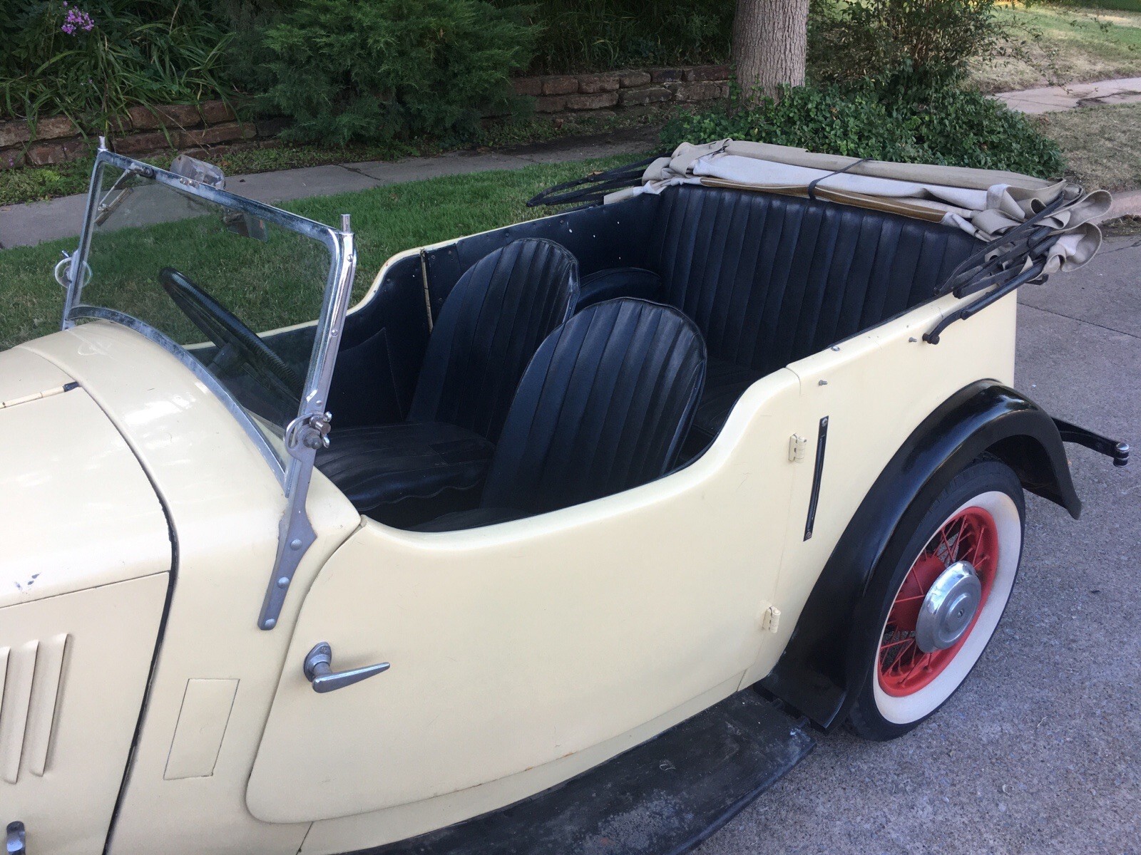 Right front drivers side top bow metal bracket is broken loose from the front bow. (It still latches) but needs repair. With vehicle is a complete set of window frames, with what looks like all the old original material. Great for patterns. Also a set of factory hard steel wheels come with car.