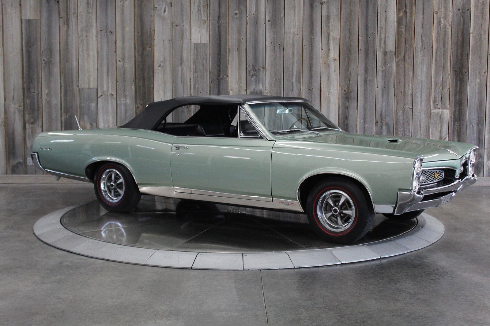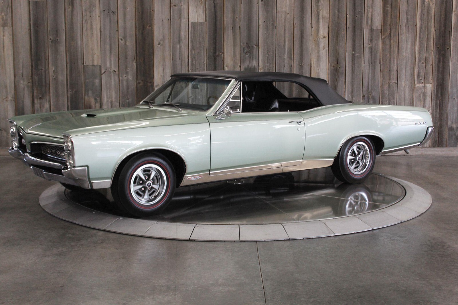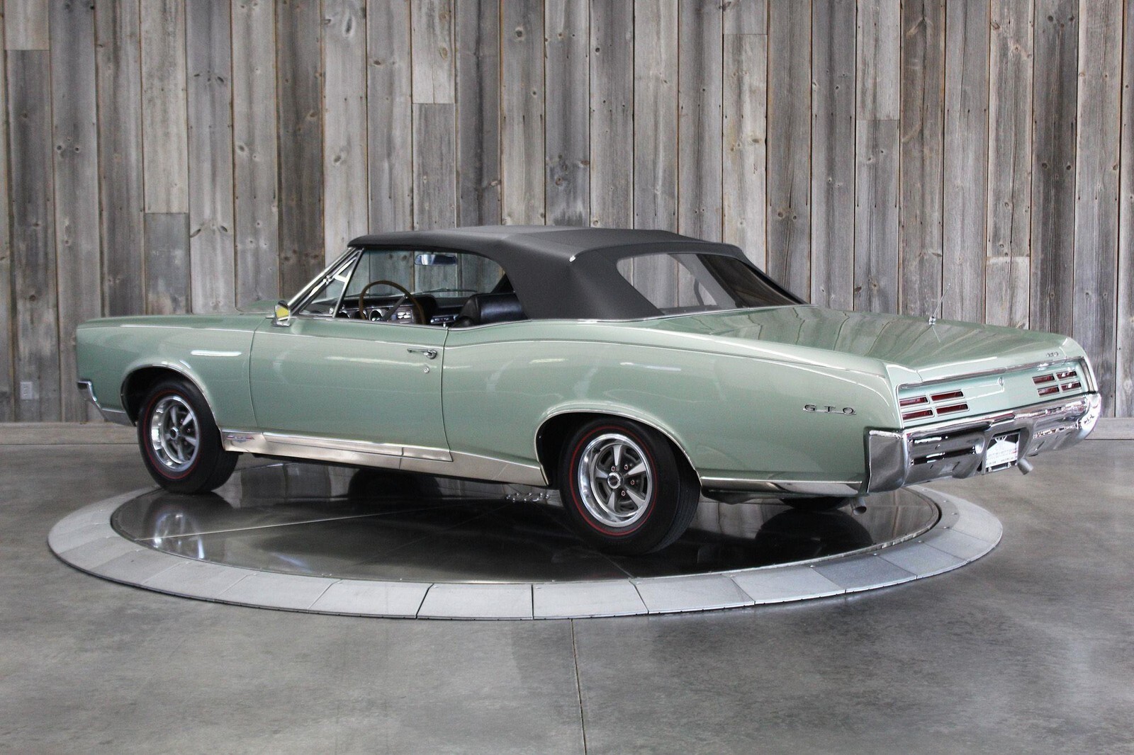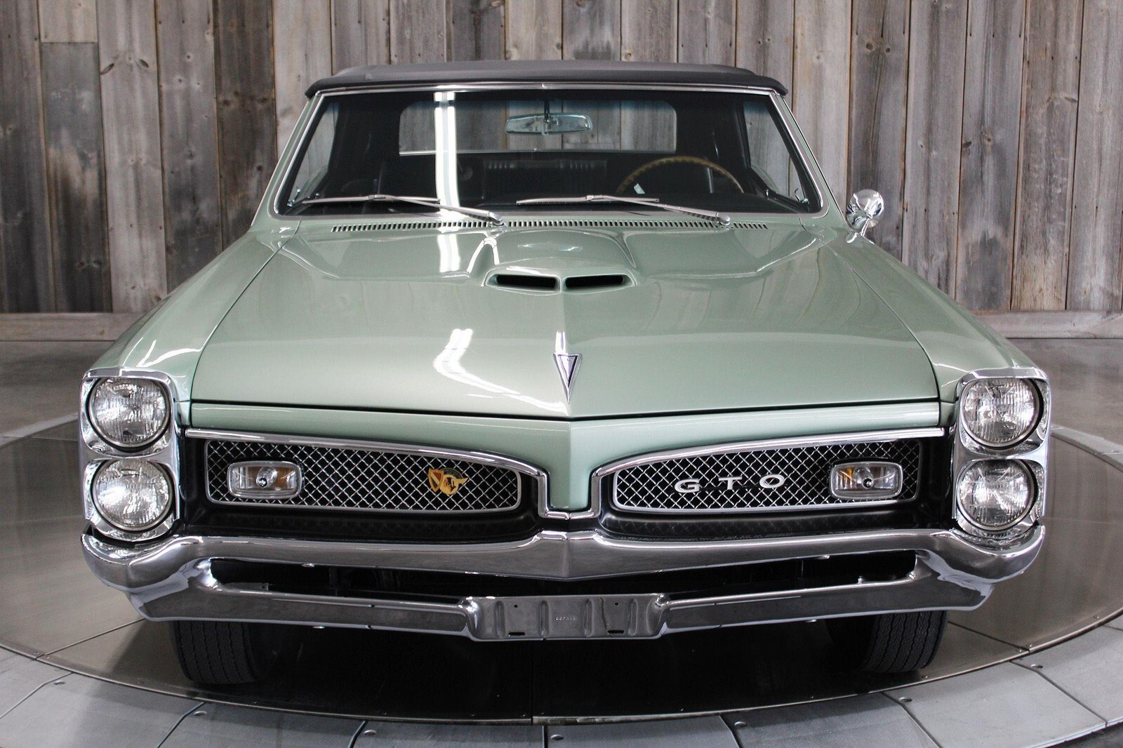 Vehicle Original VIN :563-562-03311712447 ’67 PONTIAC GTO CONV.– This show quality Goat retains its original numbers matching 400/360hp HO optioned engine. Linden Green w/Black int. and black vinyl top with matching boot. Older frame-off restoration. It also still has the original 4spd. Transmission. Other original options include - Power steering, power brakes, and power trunk release. Equipped with a black vinyl power convertible top (matching boot) tilt steering column, restored original AM/FM radio, and dual exhaust. It comes with its restored original Rallye wheels and redline radial tires. The car has its original numbers matching engine, correct service replacement carburetor, numbers matching rear end, numbers matching heads, and numbers matching intake. It comes with a reproduction window sticker, PHS documentation, the original owner’s manual, two Gold certificates, and a Silver awarded during the “Pontiac Nationals” cars show, it also comes with a judging sheet from its Gold award. The last owner had the car for more than 25 years. Car built: 4th week of May, Engine stamped # 634826 “WS” .There is an “X” stamped over the “W” beside the “S” but our GTOAA judge/authenticator (who knew the previous owner) knew he was touting the car as a RAM AIR and stamped the “X” over the “W”. The GTOAA judge/authenticator verified you can still see the “W” under the “X”. The GTOAA judge visually determined everything is original as listed. Engine block date 267, Intake manifold date code E157, Transmission # P7E222, Rear end # 125 / 9788647, Service Replacement carb # 7037263 / 1783, passenger side head # E127, driver side head # E117, driver side rear quarter # 236720, passenger side rear quarter #2302007. (Validate entire description for accuracy before bidding/purchasing)