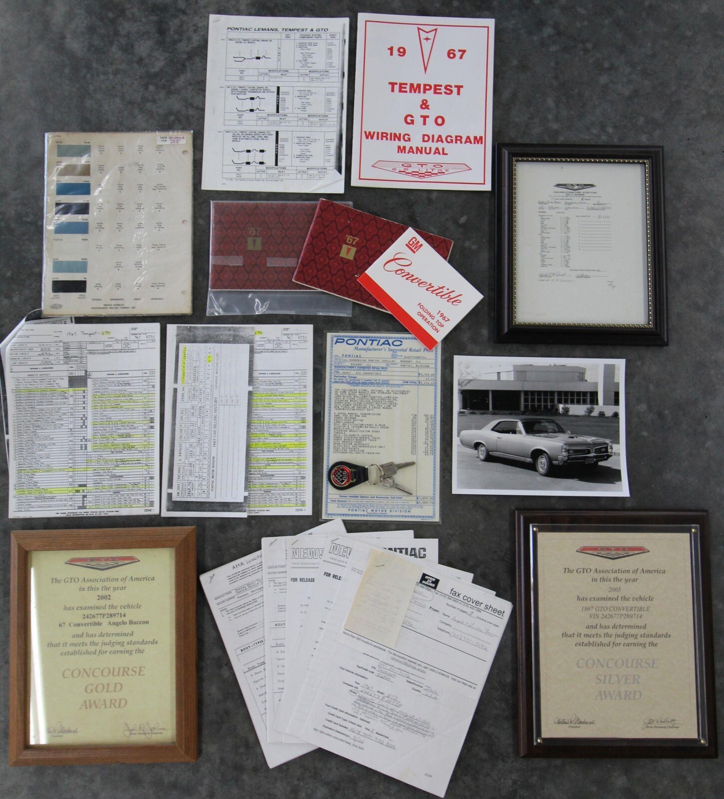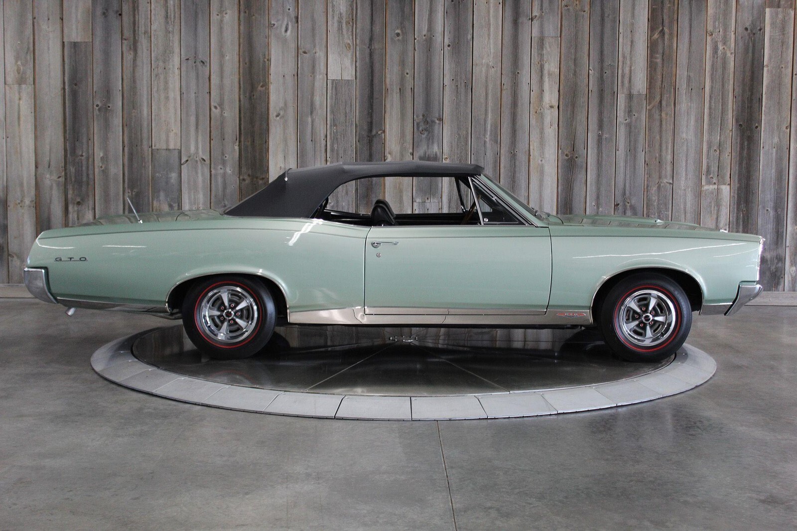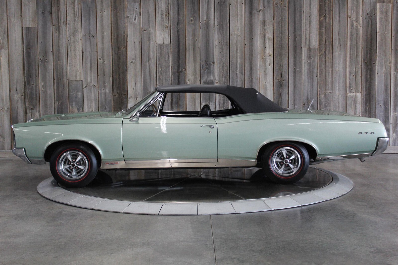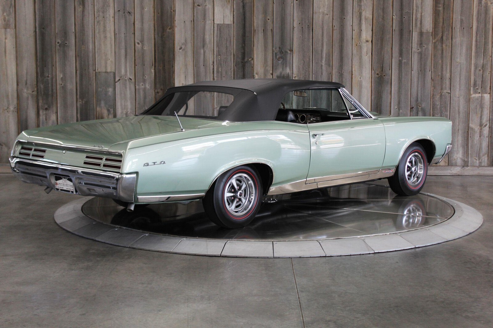 Vehicle Original VIN :563-562-03311712447 ’67 PONTIAC GTO CONV.– This show quality Goat retains its original numbers matching 400/360hp HO optioned engine. Linden Green w/Black int. and black vinyl top with matching boot. Older frame-off restoration. It also still has the original 4spd. Transmission. Other original options include - Power steering, power brakes, and power trunk release. Equipped with a black vinyl power convertible top (matching boot) tilt steering column, restored original AM/FM radio, and dual exhaust. It comes with its restored original Rallye wheels and redline radial tires. The car has its original numbers matching engine, correct service replacement carburetor, numbers matching rear end, numbers matching heads, and numbers matching intake. It comes with a reproduction window sticker, PHS documentation, the original owner’s manual, two Gold certificates, and a Silver awarded during the “Pontiac Nationals” cars show, it also comes with a judging sheet from its Gold award. The last owner had the car for more than 25 years. Car built: 4th week of May, Engine stamped # 634826 “WS” .There is an “X” stamped over the “W” beside the “S” but our GTOAA judge/authenticator (who knew the previous owner) knew he was touting the car as a RAM AIR and stamped the “X” over the “W”. The GTOAA judge/authenticator verified you can still see the “W” under the “X”. The GTOAA judge visually determined everything is original as listed. Engine block date 267, Intake manifold date code E157, Transmission # P7E222, Rear end # 125 / 9788647, Service Replacement carb # 7037263 / 1783, passenger side head # E127, driver side head # E117, driver side rear quarter # 236720, passenger side rear quarter #2302007. (Validate entire description for accuracy before bidding/purchasing)