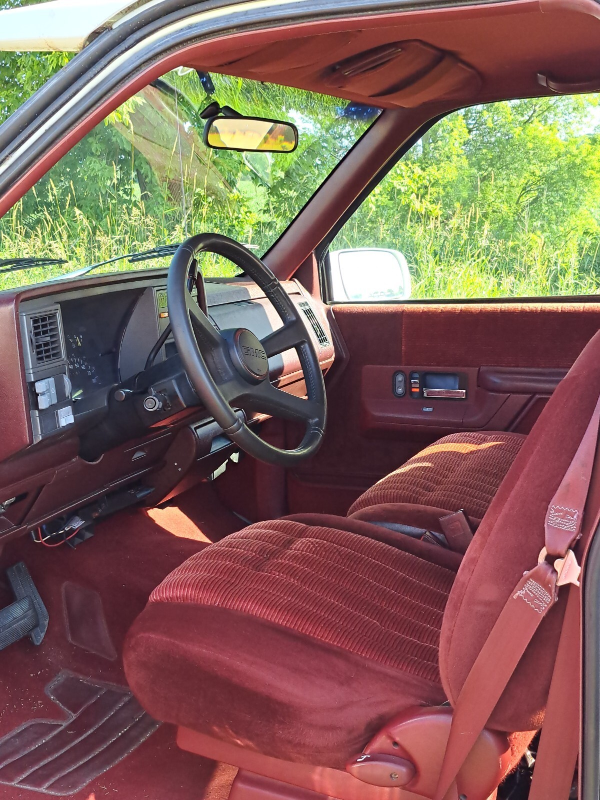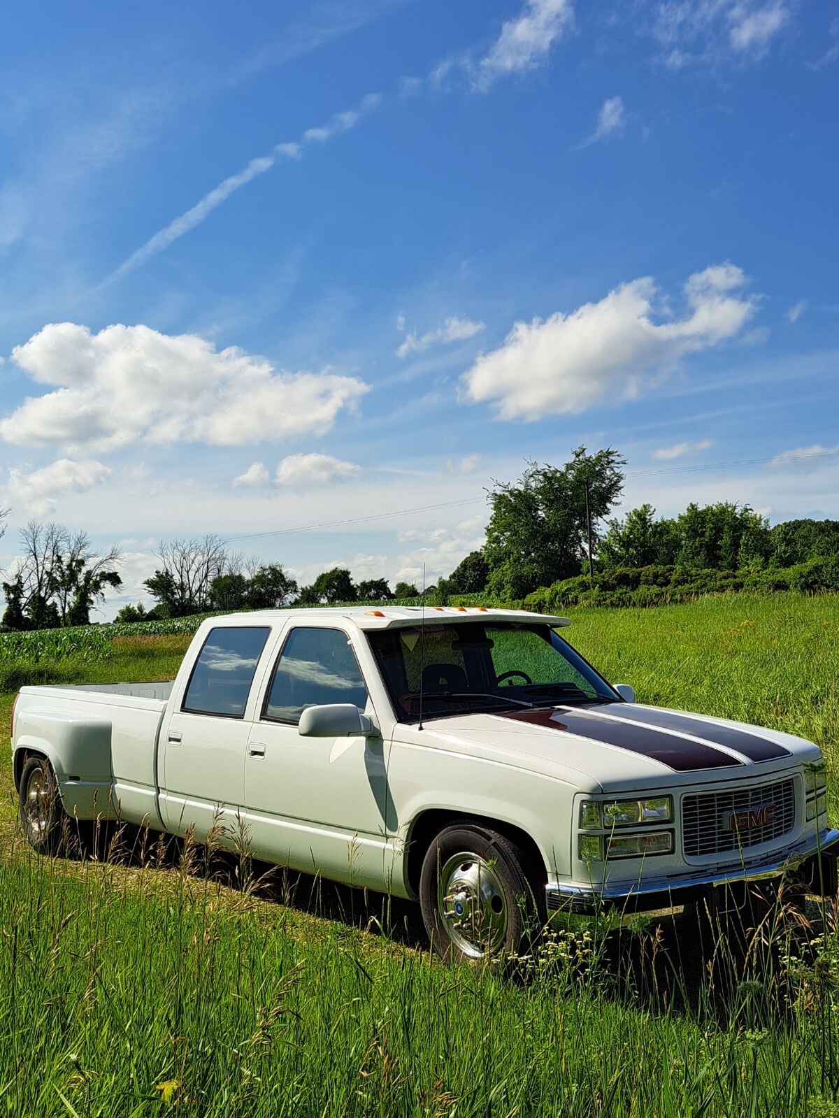 Custom 350 swapped lowered gmc sierra crewcab dually. Truck has been in wisconsin its whole life but in good condition for age, only minor surface rust in usual areas -rockers/wells. Floor and frame are solid. Odometer is not actual due to engine/interior swap done by previous owner. Aftermarket exhaust, back 4 tires are almost new, recent oil change and differential flush. Lowered about 2 inches on drop shocks/springs. A/C does not work. Could use a little tlc but overall good running truck. |