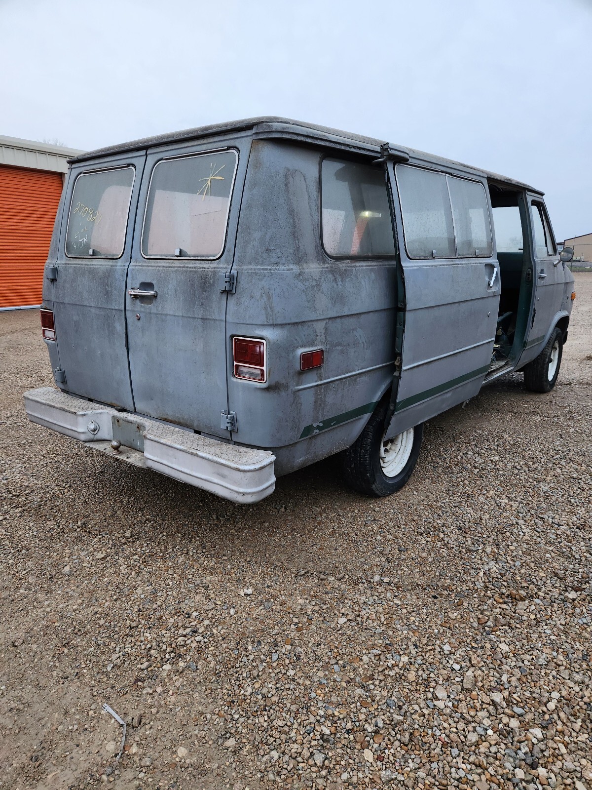 The 1978 Chevrolet G10 Van is a standard cargo van with a green interior color and primer gray exterior. This classic is ideal for a vintage van enthusiast looking for a restoration or customization project. I bought it to do just that but no place to do it the right way. I do have a clean Texas vehicle title, sadly I listed the mileage from the wrong vehicle, it's up to 122k, sorry. |