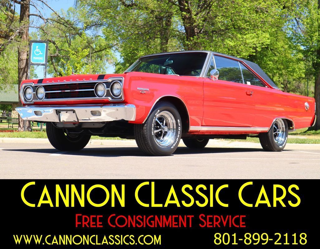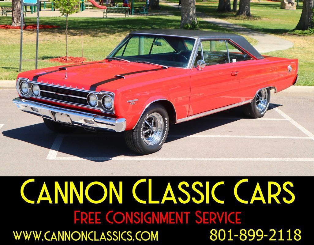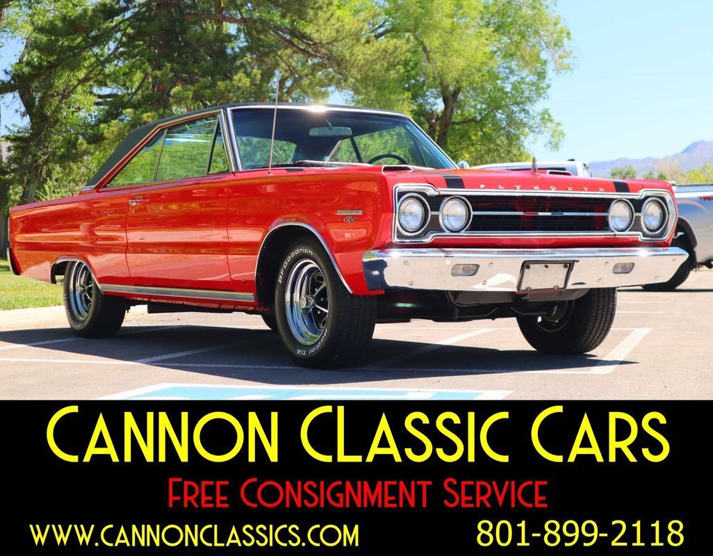 Vehicle Original VIN : RS23L77120037 1967 Plymouth GTX -Fully Restored! -Rebuilt 440cui V8 -Torqueflite A727 3 Speed Automatic -Aftermarket Camshaft -Headers with Flowmaster Exhaust and electric side pipe cutouts -DaVinci 750 Carburator -Aluminum Intake Manifold -Mopar Performance Valve Covers and Air Cleaner -Front Disc Brakes -New Paint outside and in engine bay -New Vinyl Top -New Upholstery and Carpets -Aftermarket Sony Speakers with Aftermarket Radio, Includes SiriusXM Satellite Radio -Aftermarket Gauges Under Dash for Water Temp, Oil Pressure, and Voltage Do you have a great consignment like this one? Let us sell it for you! We offer a zero-cost consignment service. Financing is available, so please call us for more information at 801-899-2118. We are a licensed and bonded dealership in the state of Utah, with Utah Dealer License #148B. This vehicle is available for viewing in our showroom at Cannon Classic Cars, located at 809 W 1700 S, Salt Lake City,Utah 84104. We would love to talk to you about this classic! You are always welcome and encouraged to visit the vehicle in person. You can also text us at 801-999-0513 with any questions. Please note that this vehicle is sold as-is, with no warranty expressed or implied, and is mileage exempt. The buyer is responsible for shipping arrangements and costs. Deposits are non-refundable.