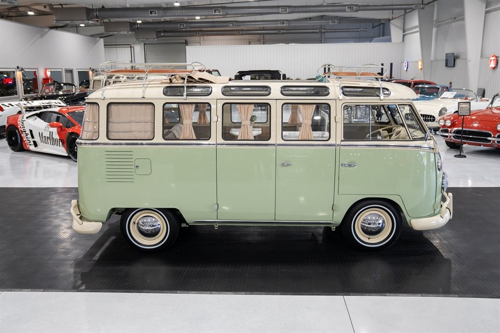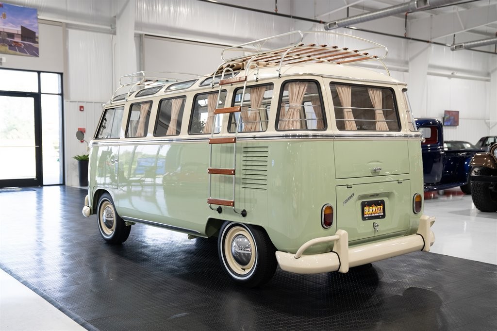 Offered for sale is this stunning 1974 Volkswagen Type 1 Bus, meticulously restored as a 23-Window Samba replica with an exhaustive rotisserie restoration performed on a Brazilian-built example. Finished in an eye-catching two-tone Volkswagen Blue and Lotus White, this Samba tribute perfectly blends vintage charm with modern creature comforts, creating one of the most eye-catching and functional VW Buses you’re likely to find. Under the rear hatch sits a 1500cc air-cooled flat 4-cylinder engine paired to a SP2 4-speed manual transmission equipped with 8x31 gearing. The drivetrain runs smoothly and delivers classic VW simplicity and reliability. This bus also features a completely rebuilt brake system, new wheels and hubcaps, and fresh tires to make sure it drives as beautifully as it looks. Inside, the cabin is a thoughtful blend of nostalgia and livability. Air conditioning keeps things comfortable, while modern camping and entertainment upgrades include a mini fridge, running water from a small faucet, a 2-burner electric stove, and a pop-up bed that easily transforms the interior into a cozy sleeper. There’s even a 32-inch pop-up TV cleverly stowed when not in use—making this bus equally suited to the road trip of a lifetime or an impromptu beachside movie night. Other recent upgrades include a new steering wheel and speedometer, all installed to preserve the classic look while offering improved reliability and function. A full-length sliding sunroof bathes the cabin in natural light and enhances the iconic 23-window look. Whether you’re a VW enthusiast, a collector of unique and well-executed customs, or simply looking for a rolling piece of art that doubles as a mobile retreat, this 1974 Volkswagen Samba replica is as turnkey as they come. Ready to drive, ready to show, and ready to enjoy. Contact us today at 352-307-1968 to learn more or schedule your personal showing! FEES & TAX INFORMATION - We are a licensed dealer in the State of Florida and adhere to all state and federal laws and regulations concerning the sale of a used vehicle. All applicable taxes and fees will be charged accordingly as required by the State of Florida. A fee of $495.00 will be charged to process the vehicle. Classic Car Quality Disclaimer: We do our best to inspect, drive our vehicles, and note any imperfections in the advertisement and pre-sale. However, due to the nature of classic automobiles we cannot guarantee that every function, electrical or mechanical etc., will work as it should. These components will need upkeep and attention. In addition, often these vehicles can sit for periods of time and once you begin to drive them issues can arise without warning. Please make sure you are comfortable with this before buying a vintage automobile. We did NOT build or restore the vehicle. Vehicles are sold AS-IS, with all faults known/unknown and with no implied warranty. Pre-Purchase inspections are welcome; we describe these vehicles to the best of our knowledge.