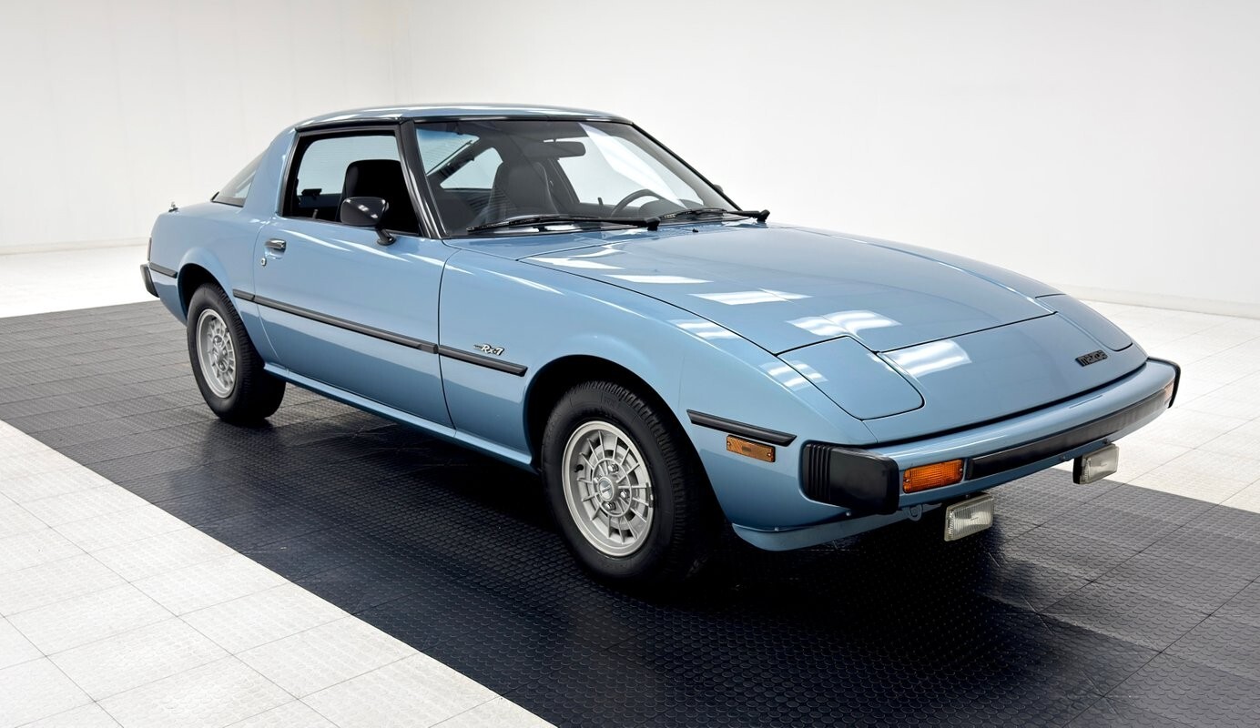 1980 Mazda RX-7 Coupe For consignment, a 1980 Mazda RX-7 coupe showing 76,888 miles, but the true miles are unknown. First Gen RX-7's have seen an uptick in interest in recent years and we're thrilled to have this well maintained version of a now uncommon car here in the showroom of Classic Auto Mall. Exterior Sixteen colors were available in the U.S. market for Rx-7's in 1980, and this one wears a single stage application of Stardust Blue Metallic, paint code U2 for those keeping score. The somewhat revolutionary shape of the RX looks great in any color and especially light blue, where the beginnings of a wedge shape finishing with a descending hatchback behind a straight C-pillar, and above narrow fenders. The windshield rakes back dramatically thus keeping overall height low, along with the center of gravity. Hidden headlights are augmented here by added fog lights while the tail light hug the back corners, split wide outside the license plate box and underscored by a body colored bumper with black trim in a relatively early example of monochromatic design. 13-inch wheels carry 185/70R13 tires, visually enhanced by the black molding that runs the midline of the car at a time when side molding was fairly standard. Our scan of the exterior yielded no notes regarding imperfections. Interior Plenty of thrills, but generally no frills describes most interiors of the 80's, and this one mostly follows suit with simple black vinyl door panels with polished trim and stitch patterned inserts, window crank and even some storage in the carpeted kick panel. Attractive and welcoming black bucket seats include vinyl borders around a cloth insert and other than a tear in the driver's lower, they are in great shape. Up front, the simple 4 spoke sport steering wheel frames the instrument cluster, three gauges relaying seven bits of information with a row of idiot lights below. In true sports car fashion, the tachometer is front and center. Gray plastic frames the center stack where we have a Clarion AM/FM/Cassette player below it, numerous toggle switches, and the A/C panel up top. This stack cascades down to the center console where the black booted shifter resides along with a change holder for those dreaded tollgate receptacles, and all is clean. Low pile black carpet covers the floor and a black vinyl headliner is up above with a decorative stitched design that runs north to south. The carpeted hatch floor is open and clean and is flanked by molded plastic walls that house integrated speakers. Drivetrain We find clean conditions under the hood and a 1146cc rotary engine with 103 horsepower and a Nikki 4-barrel carburetor. A 5-speed manual transmission sends power a short distance to the rear axle housing 3.909 gears. Power brakes are onboard with discs in front and drums in the back. Undercarriage General patina, some surface rust, and oil noted on the pans and rear differential are the general conditions on the otherwise clean underside. The unique exhaust system runs in tandem, utilizing the central tunnel for some of the journey and terminating with a stock style muffler giving way to dual chrome tips. Suspension consists of coil springs up front and a 4 link with coil springs in back. Drive-Ability The rotary engine delivers a spirited run and at this height and size, even moderate speed feels fast. It's certainly fun with the ability to track straight and turn with unwavering ease, all while smooth shifts allow for quick acceleration, and as icing on the cake, all functions operate as intended on this well maintained and now vintage sports car. While Classic Auto Mall represents that these functions were working at the time of our test drive, we cannot guarantee these functions will be working at the time of your purchase. We've had dozens of Mazda come through our halls over the years that have found new homes, including RX-7's and RX-8's. But this is the first first generation RX-7 we've had the joy of representing. A virtual Holy Grail of the sports car world and one of the original models of the JDM enthusiast movement, now available on consignment in stock configuration, and we're guessing it won't be here long! Classic Auto Mall is home to more than 1,000 classic and collectible vehicles for sale via consignment in a climate controlled 336,000-square foot showroom (that's more than 8 acres!). The largest single location consignment dealer of classic and collectible vehicles in the country is located in Morgantown, Pennsylvania, just 1-hour west of Philadelphia off Exit 298 of the I-76 Pennsylvania Turnpike. For more information visit or call us at 610-901-3804. Contact us anytime for more information or to come see the vehicle in person. There is no guarantee of mileage. A $299 Dealer Administrative fee is not included in the advertised price. With so many great cars, you know we have a lot to talk about, and we do that each week on the Classic Auto Mall Podcast with host Stewart Howden. Stewart discusses new inventory as well as trends in consignments and car prices, while interviewing celebrities and automotive professionals about amazing cars and their history. Tune in each week to the Classic Auto Mall Podcast wherever you enjoy listening. You can also watch on YouTube!
