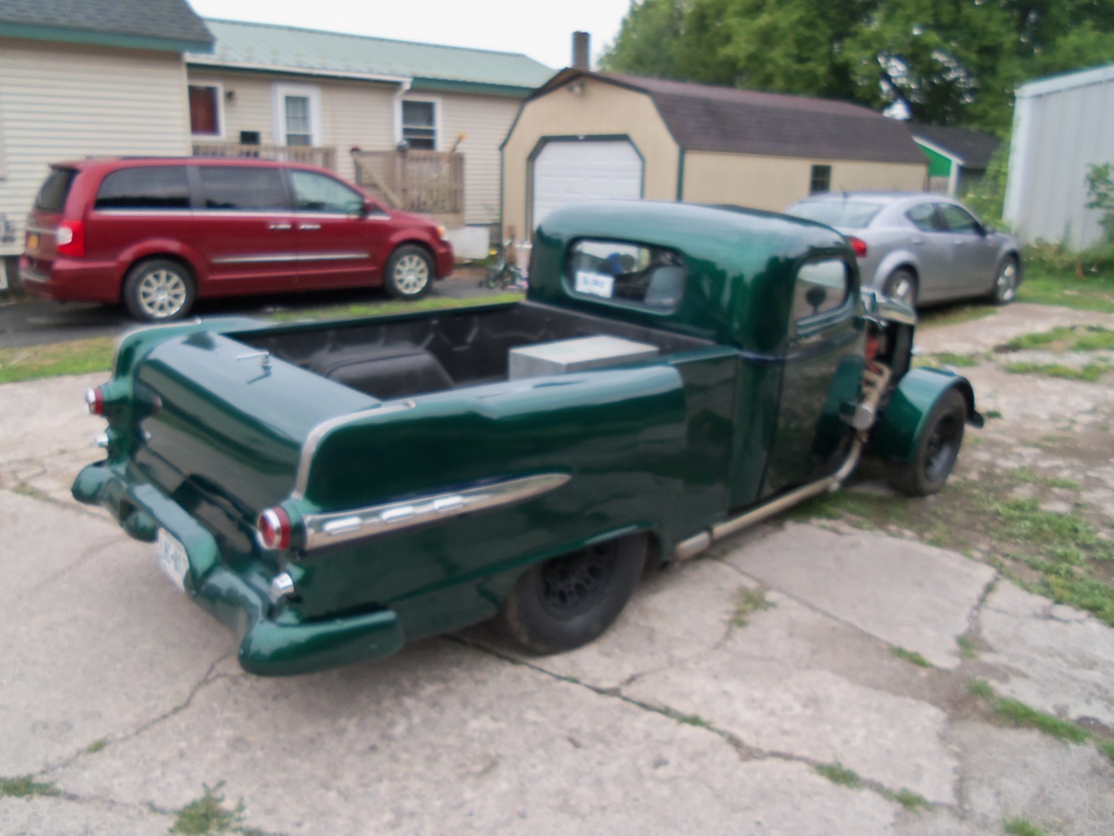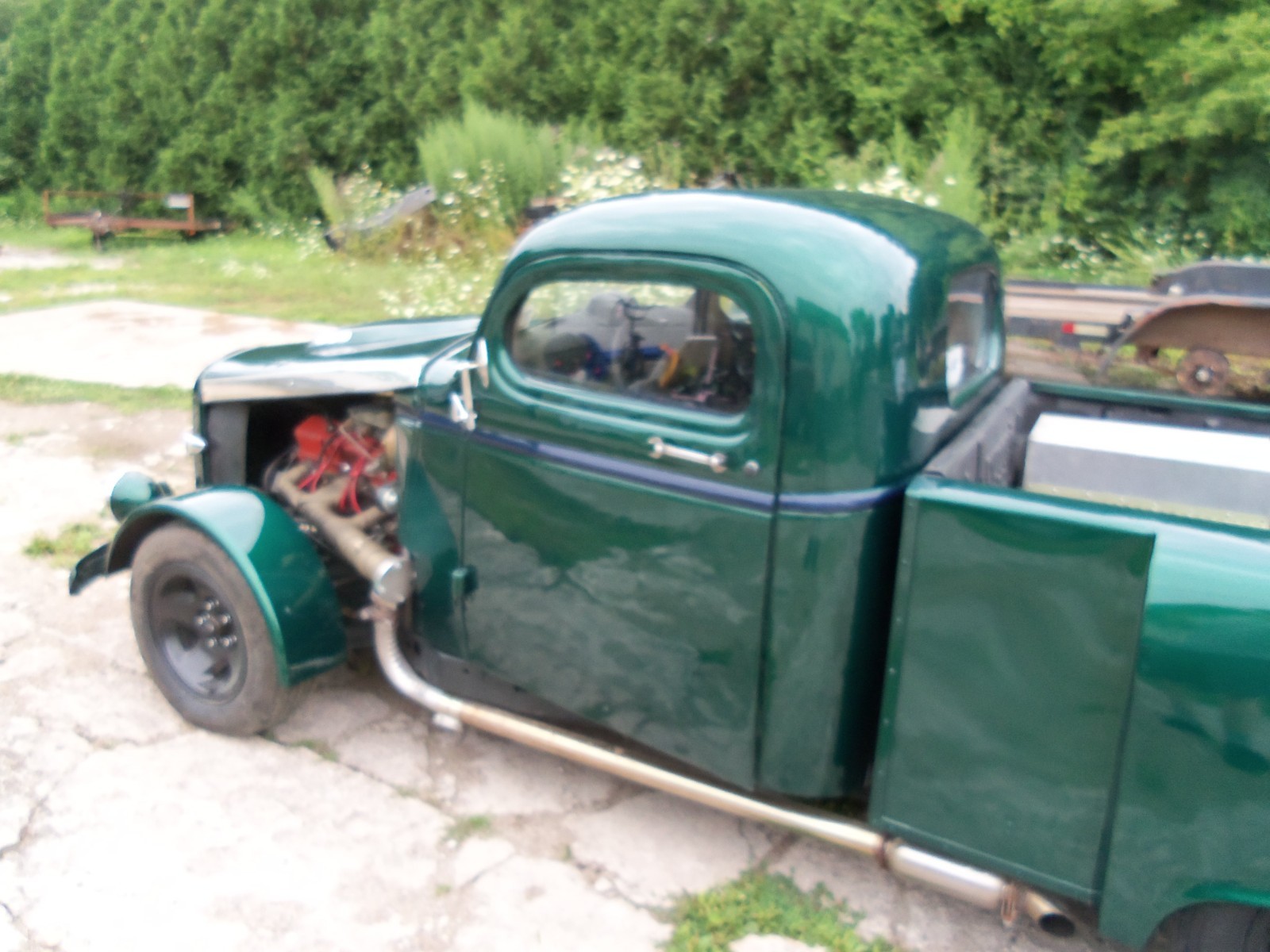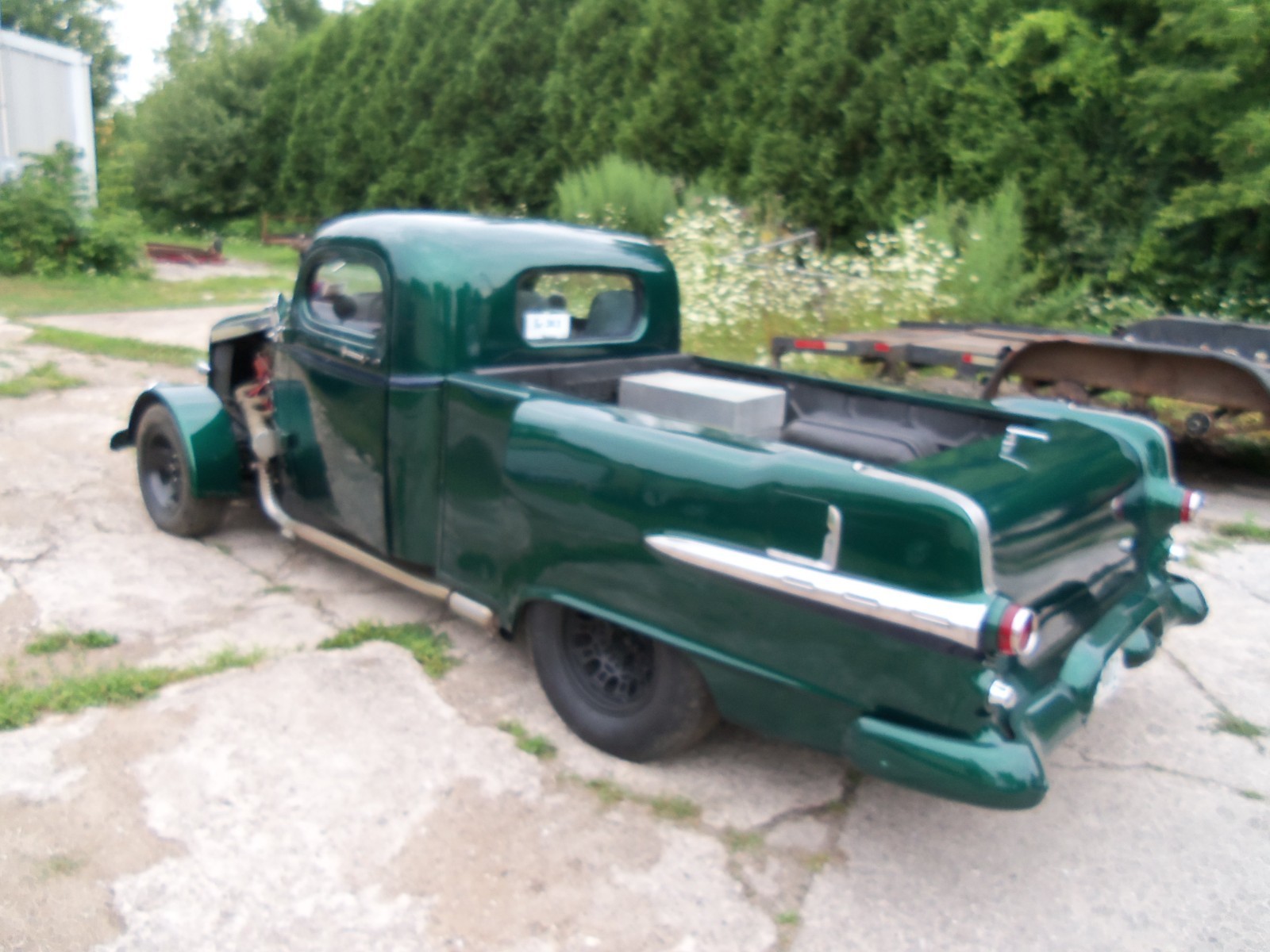 This is a one of a kind custom build hot rod. you will never see one just like it AGAIN.CUSTOM BUILD CAB WITH CHOPED TOP, ALL NEW GLASS AND SEALS,S-10 FRAME, ALL NEW FLOORS, NEW FLOOR RAILS, MOUNTED ON 2 INCH RUBBER MOUNTS. CHEVY POWER TRAIN. REBUILD 700 R4 TRANS, NEW PERFORMANCE 350 4 BOLT MAIN CRATE ENGINE, REBUILD S-10 REAR END. CUSTOM BUILD BOX TO MACH THE LAY OUT OF THE CAB.NEW BRAKES, SHOCKS, NEW TUBULER A ARMS AND 2 INCH LOWERING SPINDLES, NEW RACK-AND - PINION, NEW STEERING BOX.NEW POWER BRAKES BOOSTTER, ALL NEW BRAKES ALL THE WAY ROUND,GAS TANK IS A NEW 1957 TANK AND FUEL SENDER, ALL NEW LINES, ELEC FUEL PUMP TO BACK UP MOTOR FUEL PUMP.NEW 1932 FORD ALUMINUM RADIATOR WITH A 32 FORD GRILL, GREEN BASE COAT / CLEAR COAT OUT SIDE WITH BLUE INSIDE. NEW ELCETIC WINDOWS JUST PUT IN THE DOOR. NEW ELCETIC DOOR OPENERS. ALL NEW GAUGES AND WIRING.JUST PLACED CUSTOM FRONT FINDERS ON IT.JUST TO MUCH TO LIST. JUST 30 MILES ON THE SPEEDOMETER IT IS ONE NEW RIDE, HOT ROD IS SOLD AS IS AND YOU DRIVE IT HOME.