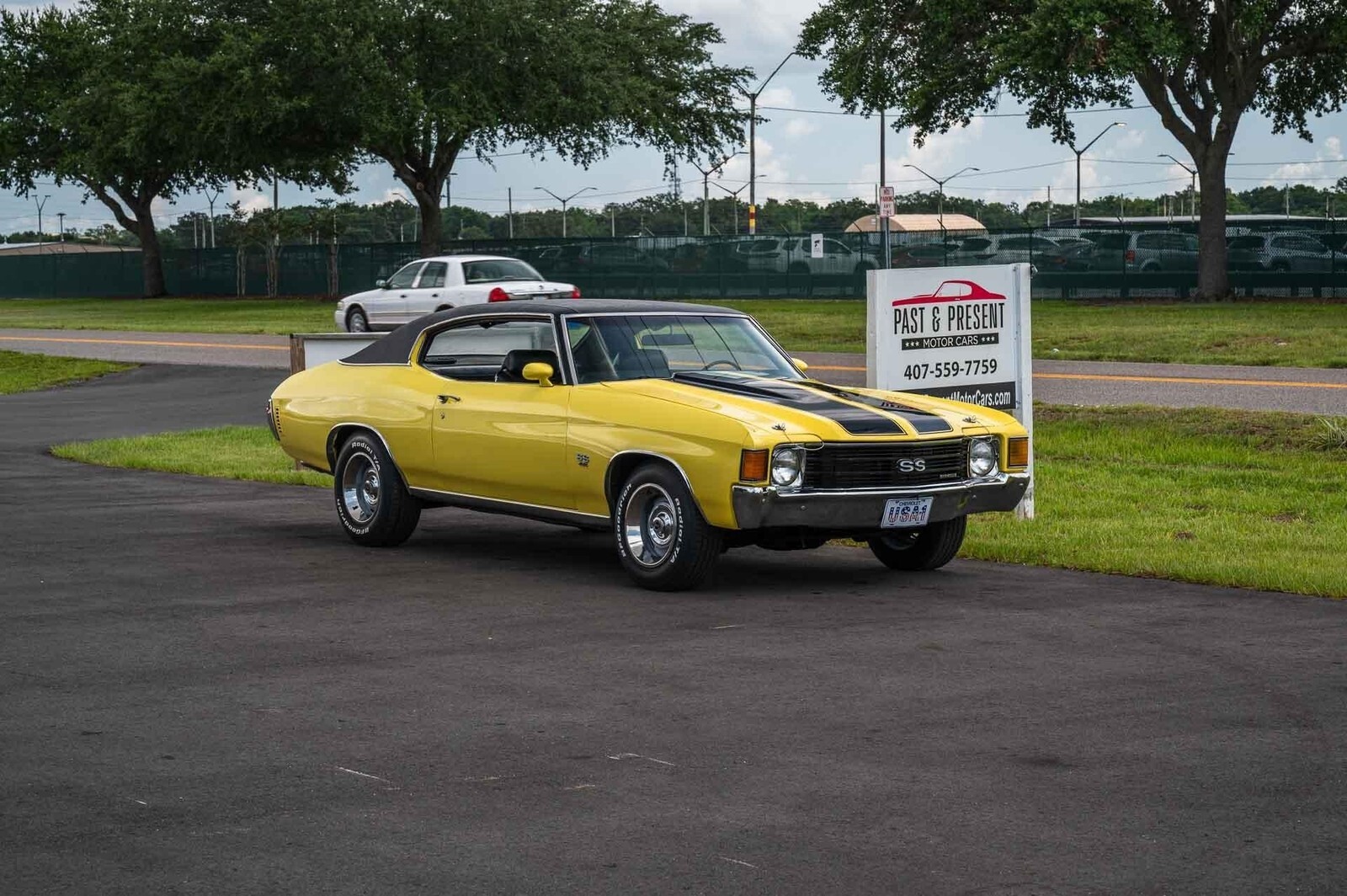1972 Chevrolet Chevelle – Matching Numbers, Documented This 1972 Chevrolet Chevelle has the U code in the VIN indicating it came from the factory with a Big Block. It is powered by its matching numbers 402/396 Big Block V8 engine, paired with a Turbo 400 automatic transmission. This car delivers strong performance and classic muscle car appeal. The exterior is finished in factory-correct Color Code 56 Cream Yellow with a black bucket seat interior and center console. Inside, it features a factory tach and full gauge package. It rides on 15-inch Rally wheels wrapped in BF Goodrich Radial T/A tires for a period-correct look and solid road feel. The car retains exhaust manifolds and is equipped with great sounding dual exhaust. The car runs and drives great, making it an excellent choice for weekend cruising, local shows, or as a solid addition to any muscle car collection. While we do our best to provide the highest quality muscle cars with an honest and reliable description and realize the importance of transparency when selling vehicles. That being said, we have not built, modified, changed or personally owned this vehicle. Whether this vehicle is consigned or owned by Past & Present Motor Cars we do not know the vehicles complete history since new. We want to be clear and try to answer any questions our customers might have prior to purchasing. Additionally, we not only welcome but we encourage 3rd party independent inspections. Please inquire prior to purchase to make sure the advertised vehicle has not already been sold. We list our vehicles on multiple websites and a vehicle can sell at any time. If a customer chooses to purchase sight unseen (many of our customers choose this option) the customer accepts the vehicle AS IS and WHERE IS and understands we cannot address concerns after purchase. For this reason, it's important all concerns are addressed prior to purchase. We make every effort to present accurate and reliable information, but use of this information is voluntary, and should only be deemed reliable after an independent review of its accuracy, completeness, and timeliness. It is the sole responsibility of the customer to verify the existence of options, accessories and the vehicle condition before time of sale. Financing is Available with low rates and Vehicle Shipping is available from our Showroom to your Garage. A Classic Car Warranty is Available for Purchase from a 3rd Party. Please speak to our Sales Associate or Company Representative for more information. Our team is working and available anytime by Phone or Text for your convenience at 407-559-7759. Thank you for your interest!