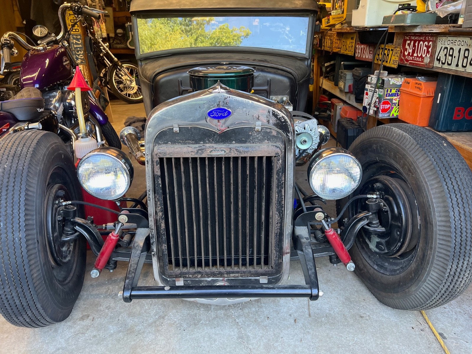 1931 Ford Model A Pickup Hotrod chopped and channeled with a rebuilt 283 Chevrolet V8 motor with 4 barrel carburetor. Powerglide Transmission, Ford 9" rear end that was narrowed to fit, removable steel roof panel, custom Buick stainless steering wheel, Lokar case mount automatic transmission shifter, new glass to fit all the windows from Bob's (in box on roof), keg fuel tank, winter grill, new radiator and fan, Painless wiring kit, Stainless lake style headers with baffles and turnouts, Mooneyes gauges made to fit original Ford Dash, Wilwood master cylinders, No junk on or in the truck. I have hubcaps for wheels and original Ford Pickup STEEL grill. CLEAN Oregon title in my name. FIRST picture is before it was partially painted and show the side view of the pickup. Stance. Please look at photos and ask questions thank you, Jason