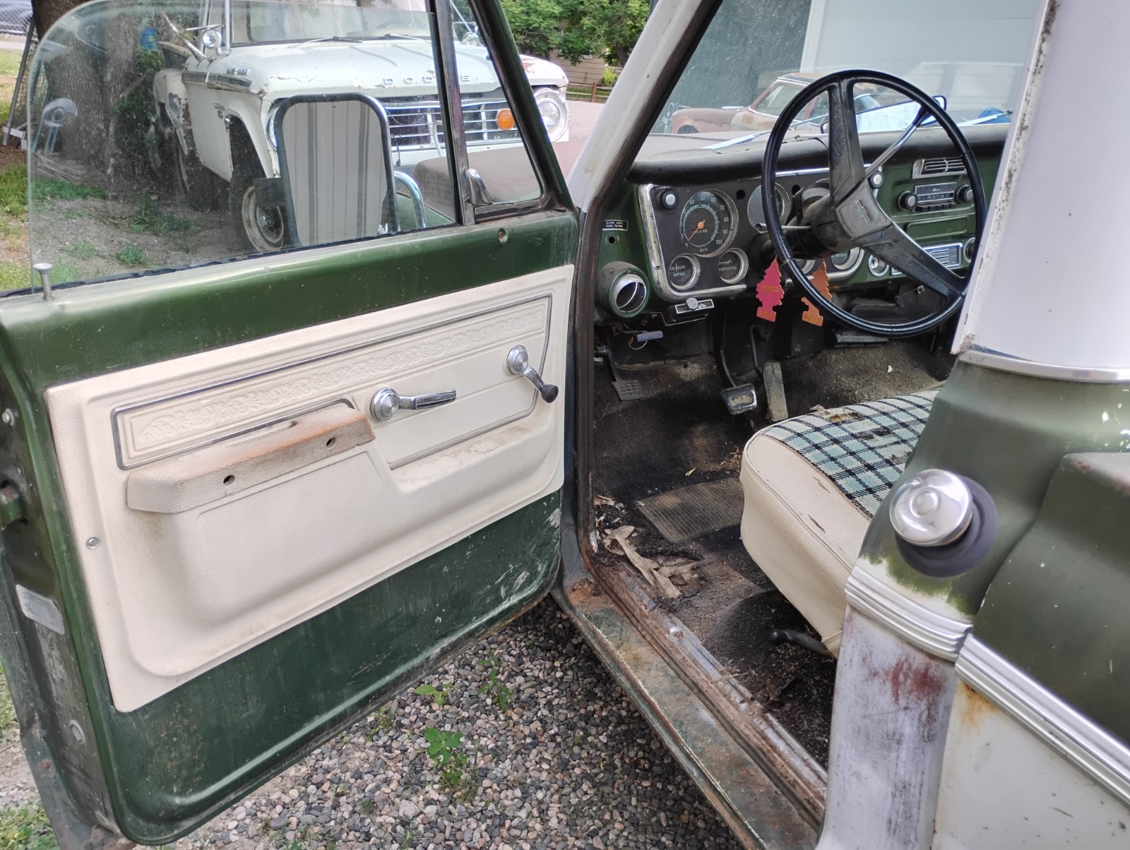 Top of the line pick up for 1972; Custom Deluxe Custom Camper. Good original condition with 400 big block automatic two wheel drive.Power steering, air condition and front disc brakes. Runs and drive well. |