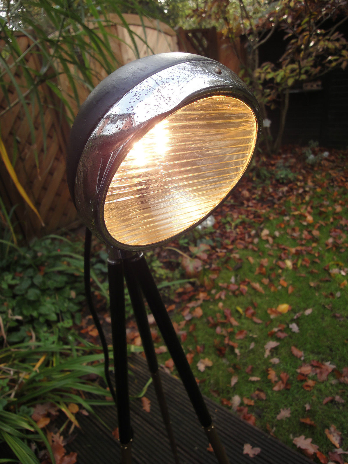 | Hello. for sale is this handmade Lamp. It is made out of an original oldtimer headlamp from a firetruck made in the 1930´s. The stand (tripod) is made in the mid century for photographer. The LED´s inside and all electronic parts are new from 2014. This lamp is a piece of art. The projected light is breath-taking. The emitted light was designed by an light artist. There is not a second one like This in the world. It comes with a long cable. - A foot switch to turn it on and off. - With the little switch on the back of the lamphead you can change the color from warm White to red/amber. - Inside the headlamp are 4 high power warm white LED´s plus 4 high power red LED´s combined with a high power amber LED. The AC/DC Adapter runs from 100 - 240 Volt 50 / 60 Hz that means you can plug it everywhere in the world. A German plug is installed and a Adapter for the USA is also in the package. It looks extraordinarily as you can see in the pictures. You can place this lamp in your showroom. nbsp; on your desk. nbsp; in your livingroom etc. Switch it from white- to redlight for special moments. No Warranty / private sellerI will ship worldwide. It is located near HamburgPlease do not hesitate to contact me for any question regarding this auction at any time. |