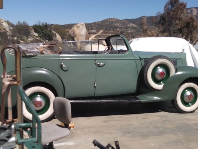 This car is a project but it has good attributes. It has a clean title, good body, excellent dash with perfect radio and heater. It is not restored but clean with very little missing. I have the lights and bumpers. The rear lisense plate holder is missing. The seats are out and there is no upholstery or cloth top but the top bows are all there. The car has little rust but a new floor. The engine needs rebuilding and It has a super eight hood but the car is a 120. If you are interested please talk to me about details. This car is so rare and beautiful so it presents an opportunity to possess something intrinsically special.