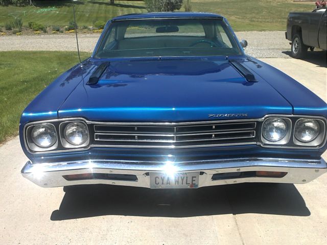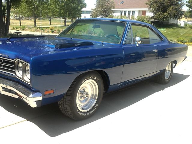 THIS IS A VERY NICE 69 PLYMOUTH ROADRUNNER. I HAD IT PROFESSIONALLY RESTORED. THERE IS LESS THAN 500 MILES ON THIS RESTORATION. THERE IS NO RUST ON THIS CAR. DURING THE RESTORATIONTHE CAR WAS STRIPPED DOWN TO THE BARE METAL, VERY NUT AND BOLT REMOVED.IT IS PAINTED VIPER BLUE WITH A BEAUTIFUL WHITE INTERIOR. THE INTERIOR IS COMPLETELY NEW RIGHT DOWN TO THE ORIGINAL SEATBELTS BEING RECHROMED AND REWEBBED. NEW HEADLINER, EW CARPET. NEW WINDSHIELD. FRONT SUSPENSION COMPLETELY REDONE. NEW WIRING. ALL NEW WEATHER STRIPPING. NEW WHEELS AND TIRES. 383 TOTALLYREBUILT BORED .30 OVER. 4 SPEED. NEW TRUNK MAT AND SPARE TIRE COVER. FRONT AND BACK BUMPERS RECHROMED. THE PICTURES I HAVE DO NOT SHOW THE CHROME INSTALLED IT HAS SINCE BEEN INSTALLED. THIS IS A VERY NICELY RESTORED RR. IT SHOWS WONDERFUL AND DRIVES GREAT!!!! SO MUCH WAS DONE TO THIS CAR I HAVE NOT LISTED EVERYTHING.IF YOU HAVE ANY QUESTIONS, LEASE ASK.