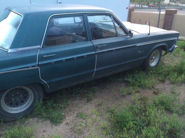 1966 fury 2 sedan with original 318 motor. Original engine rebuilt by previous owner and recently serviced with receipts. Radiator is new, attery recently upgraded. Body in great shape, ery little rust. Very few dents at all except for 1' x 1' dent in left rear quarter panel that is less than .5" indented. The fury needs electrical work on right tail light, urn signals do not work, nd dash gauges need rewiring. Front lights work. Brakes are in good shape. CD player and radio installed and work. Tires have good tread. Windows and windshield in good condition and wipers work. Dash is worn and cracked, ut seats are in good condition. bumper ok, ear bumper indented, nd trim missing or damaged in parts. I drove this car 60 miles with no problem, ut have decided to sell it as I need to free up space. Would be a neat project car to finish.
