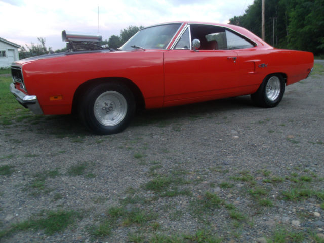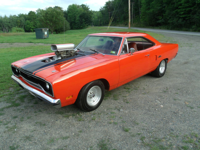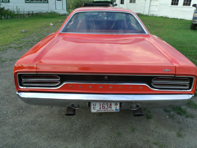 | what I am Selling here is a 1970 Plymouth GTX all GTX CARS IN 1970 came through with 440 = 440+6 or 426 Hemi . This car had the 440 and that motor is long gone the 440 motor in it know has been built up a little bit more than you could buy at the local Plymouth Dealer back in 1970 . first thing that was done is lower the compression ratio to 9 to 1 use a later model block for thicker cylinder walls = less heat add on Hooker Super Comp. Headers 2 electric fuel pumps 2 half inch fuel lines 2 600 holley carbs and an 6-71 blower and put a shift kit in the transmission hook it to the 8 3/4 rear with 354 gears and you can go from point A to B IN A HURRY !!! The body is as nice as any 1970 around the frame rails and floors are great shape rockers doors fenders and trunk lid roof are great shape the hood has a big hole in it though . the car sold new sand pebble beige with a black vinyl roof burnt orange interior the door panels dash pad console and all gauges are great shape and work as they should . the glass is in great shape and all windows line up and roll up and down as they should . the car still has drum brakes and it will stop . the car has manual steering or arm strong .it still has the fender tag wipers work heater works am radio with 8 track player and fm adapter all work front and rear speakers all work . the car needs seat covers headliner and carpet i have the carpet new . it has a road runner grill a new grill is 500 bucks interior parts are 1000 bucks or drive it like it is. This Car runs drives and goes like a raped ape . Ebay is a joke but it gets it out there for the world to see tat is why I AM LISTING IT ONE LAST TIME !!! |