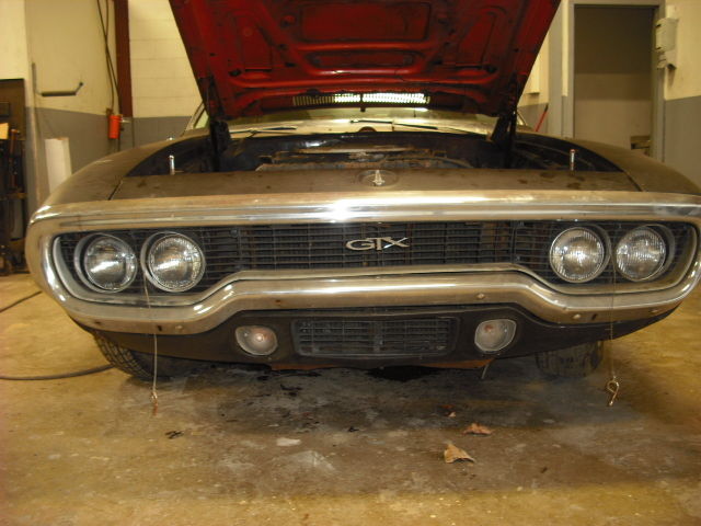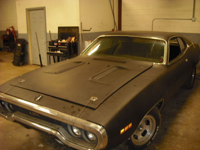 1971 gtx 440 automatic numbers matchin, black with white int originally, uckets console 150 speedo ac car newer rear bumper an tailights comes with new gtx emblems trunk is soli, ,frame is soli, needs rear quarters, uter wheel wells, eft rocke, it is included. this car will need total restoration but will be a good investment this is a tx9 black car with black vinle top with white in, comes with fender tag some one tryed to sand blast tag so looks like swiss cheese but still readible only bad spot on floor is pictured on drivers sid, it is also in chrysler registryit is number 29 in 93 insequence of 71 440 4 barrel 2 door hard tops registeered at the snt louis mo plant an built to specs for usa this is one of 2.538 built have copy of chrysler registry from 2204. great project for the winter