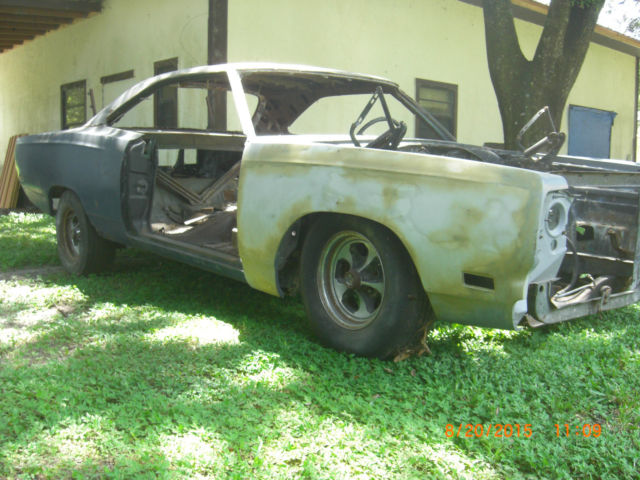 1969 Plymouth GTX project car has fender tag at,ps,pb,ps #s matching 440 block has 906 heads ft disk brakes 8.75 rear non matching 727 trans orig. green. Has good hood ft fenders,doors need work. good dash frame Floor has small holes good frame ft&rear bumpers need chromed. good auto column for console shift. New AMD 1/4 panels,trunk floor,filler panel,trunk gutters. grille is complete needs work. Missing windshield,seats,decklid,rods&pistons,driveshaft. |