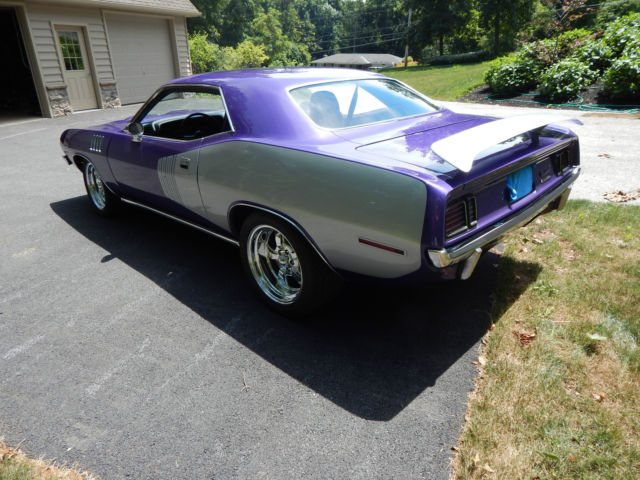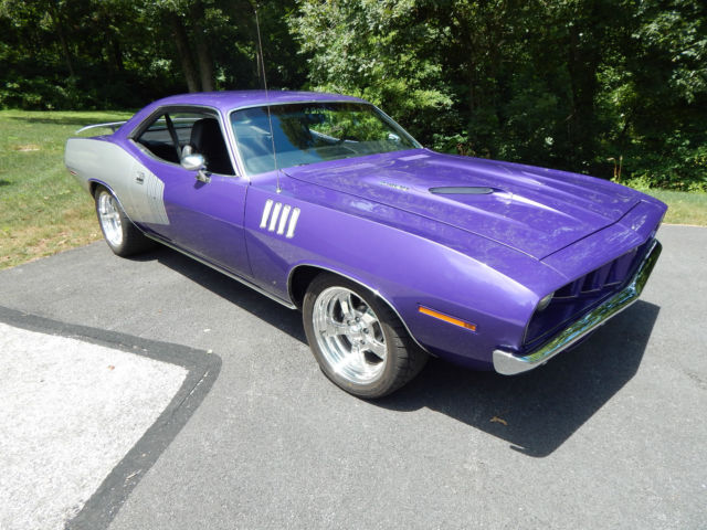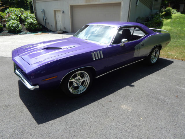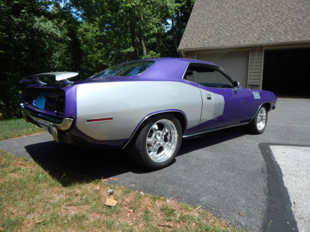 This is a real Cuda. I had this car built at an exceptional shop who installed a new style 6.1 Hemi engine and a TKO 600 5 Speed transmission with a FAST computer system controlling the engine. RKS Motorsports installed the Alterktion front suspension and Street Lynx rear suspension with coil over shocks at their shop. The body received new metal with new 2010 Challenger Plum Crazy Purple paint and silver Hemi billboards - looks awesome. It has an aluminum radiator, inch exhaust, ower leather seats, nbsp; 4 wheel disc brakes, enterline wheels, nbsp; This is a major attention getting car - it does a lot more than turn heads. There are plenty of LS Camaros out there, ut I have not seen many 6.1 Hemi Cudas. 20 MPG is no problem as I have driven it for the last 2 years with no issues. The underside of this car is extremely solid with no rust as it was completely disassembled during the build. Car is titled as a 72 but there is nothing original on it so if you want a numbers matching car this is not the car for you. This car is for the true enthusiast who wants to drive their car - not look at it in the garage. It is extremely fun to drive, ill not overheat like old Cudas, nd truly can be driven anywhere. Please respect the auction if you are interested as I will not give out reserve prices. It will sell for much less than I have in it. I am a private seller - not a dealer looking to flip a car. I had it built, have enjoyed it and am now selling to pursue other interests. I encourage you to come look at the car before bidding. Please call me with questions you may have. Jerry 717-514-1944