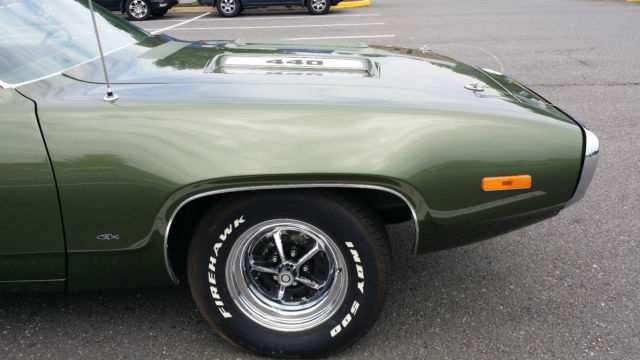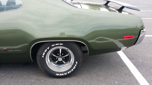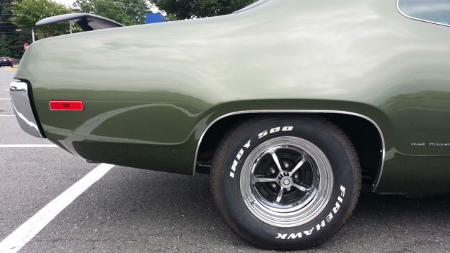 Drive-train: Matching engine & transmission. The 440 has HP2 stamp on it. The rear-end is 3:91 sure-grip (posi-trac). Run and drive anywhere. Strong and quick. Body: Dual racing mirrors, -speed wiper. Roadrunner Decor Group, 87 package. Trim everywhere including wheel lip mouldings. High quality job, one by Mopar Dealer. Car is tight like new. Undercarriage restoration, oating really nice. Few little nicks on the body. The rear louver need re-paint. Interior: Tinted glass, tachometer, oodgrain console, ear speaker. AC work great. Small cuts in driver seat, rack in dash cover (see last pics); The gas gauge & oil gauge stop working (the engine oil pressure is good). Suspension: Heavy duty Ralleye suspension. HD firm drive shock absorber. Power Steering. Manual brake. Front and Rear sway-bar. The Rear sway-bar is the major advantage of 1972 Roadrunner-GTX. Rear sway-bar improve suspension stiffness, ive driver the feeling of firm, ully control 3500 lbs of muscle machine .