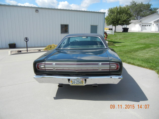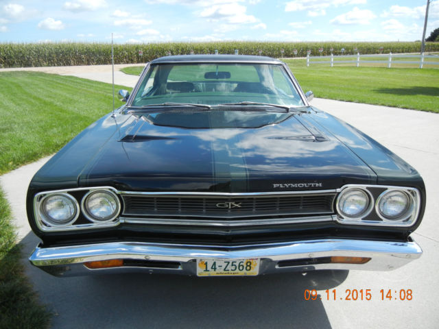 You are bidding on a 1968 Plymouth GTX. I bought the car 5 years ago from the original owner. Original owner drove the car to 82,000 miles and placed it in storage in the mid 70's. Car is a true survivor and is all numbers matching. Only parts that have been replaced are the following: dash pad, ront bucket seat covers, arpet, as tank, arburetor (have original in box and comes with car), ires and wheels (have original tires and wheels that come with car). Car has been repainted to factory color, aint job is good but not excellent. Motor and transmission work as they should, ar drives excellent. This car needs nothing. Car Specifics: 440 Super Commando Motor 727 Torque-flight Automatic Transmission No AC No PS No PB Bucket seats with console Color Green w/black stripes Black Interior 82,000 actual miles This is your chance to own a completely original, umbers matching, lassic muscle car. If you have any questions please call (402) 902-9564 On Sep-15-15 at 16:47:32 PDT, eller added the following information:Rear quarter panels were replaced when painted. |