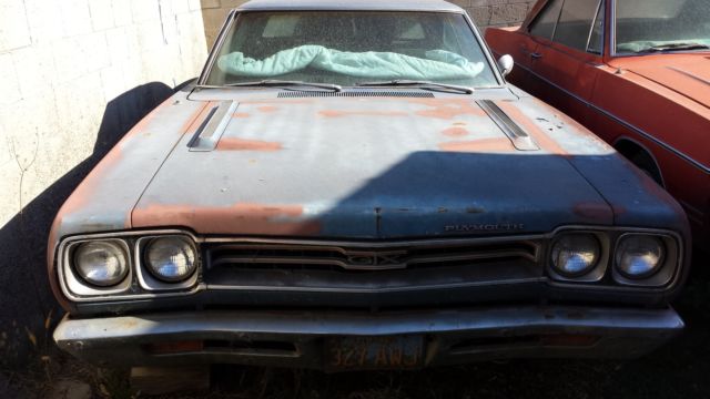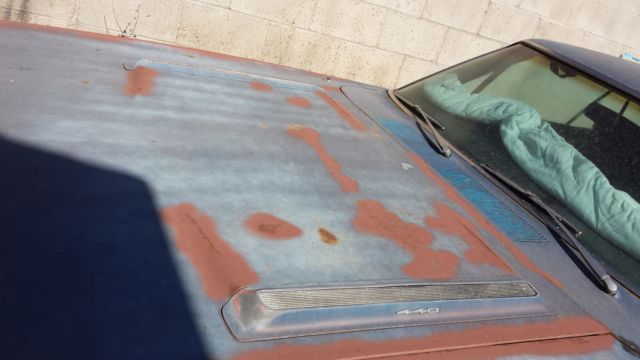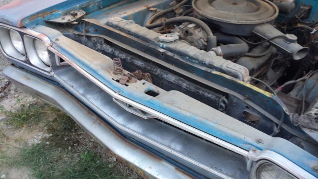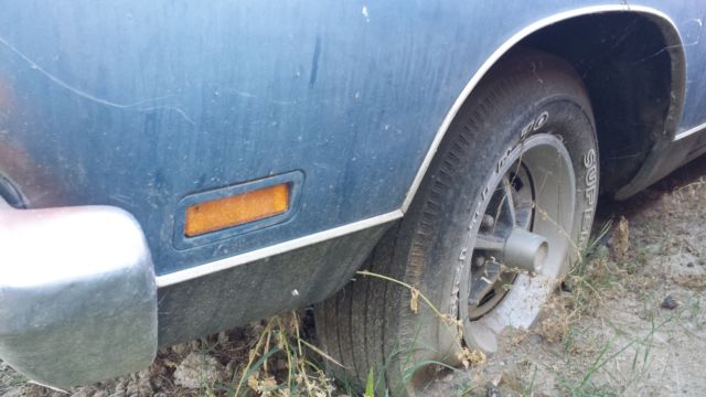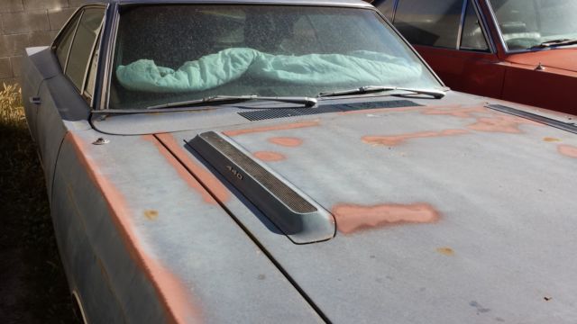 This car has been off the road since 1985. I bought it 10 years ago with the intent to restore it but I'm realizing that will never happen. The car has 53k on the odometer, t was running when it was parked. It was originally a 440 with a/c, utomatic. The previous owner put a 360 4bbl and automatic in it, riginal engine and trans are gone. The car is mostly complete, t is missing the console but the shifter is still there, nd missing the radio and radio bezel. It is factory black interior with a manual 6 way drivers seat. It is a factory disc brake, way bar, on vinyl top car and originally B5 blue. It does not appear to have ever been in an accident. The paint was wearing through so I took a can of rustoleum to try and preserve the car, ence the paint marks on the hood. The tires were new in 1985 but have sat and dry rotted. The car is like a barn find, ithout the barn, ol. If the car sells, am willing to go get some used tires and have them mounted so the car will be easier to load on a trailer. Feel free to email me or contact me with any questions, hank you.