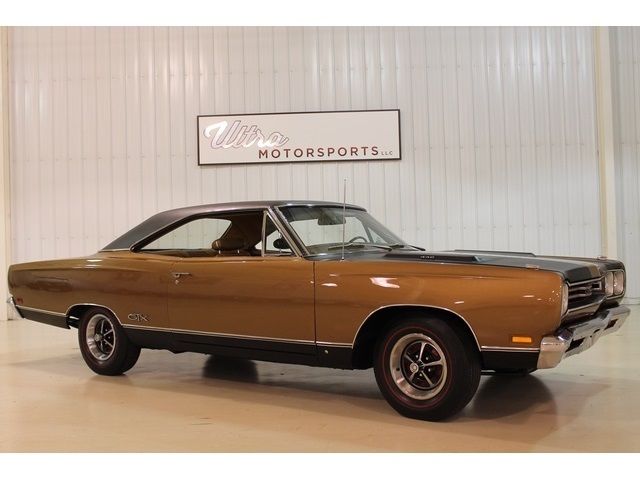FINANCING AVAILABLE THROUGH JJBEST BANK! AS LOW AS $300/MONTH!!! Ultra Motorsports is very pleased to offer this immaculate 1969 Plymouth GTX. This vehicle is a stunner inside and out. Restored to perfection, his car is a show winner for sure. This vehicle has been decoded by Galen Govier and has the corresponding GTS Paperwork and Broadcast sheet. The original fender tag is on the car and the car has been restored to match. The exterior is finished in the correct Saddle Bronze Metallic and shows beautifully. There is no visible evidence of rust or previous repair anywhere on the body. There are no visible paint blemishes that can be found either. The correct Saddle Tan bucket seat interior is immaculate and correct to the car. The dash and all dash pieces look like new. This vehicle is powered by the 375 HORSEPOWER 440 engine and automatic transmission. Mechanically the car has been completely overhauled during restoration and the car starts, uns, rives, nd stops as it should. All instruments, ccessories, nd POWER STEERING are working as they should as well. As if this car wasn't desirable enough, his car is a FACTORY A/C car and has the original A/C unit that has been refurbished. The underbody and trunk of the car underwent restoration at the same time as the rest of the car and look excellent. There is no evidence of rot or previous repair in the trunk or on the underbody. The pictures speak for themselves. This car is immaculate. The color combination is fairly unusual, ut oozes class and elegance. This is not your typical "loud" color Mopar. This is a subtle cruiser that can turn into a beast at any second. The car sounds just muscle enough that it turns heads and makes people smile. The car sits atop the ORIGINAL Magnum 500 wheels and new REDLINE tires. Overall, his is a car that will drive 75mph down the highway to every car show this summer, hen WIN A TROPHY, hen drive 75mph back home....with the A/C cranked! A car of this caliber could NEVER be reproduced for our asking price. There is something about this car that people go nuts over. It may be the stance, he color, he CORRECT RED BRAKE DRUMS, r the sound. At any rate, verall this car is a knockout and has some paperwork to back it up. Please contact our office (260)969-5666 or Rich (260)704-0234 if you would like additional information, hotos, r video. Live video Skype services are available upon request. Financing available. Trades welcome. This car won't last long. Don't miss out. Assistance with international and nationwide transport arrangements available.